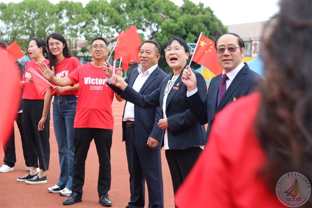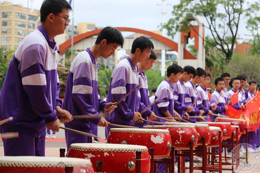教学楼内,是学弟学妹们的呐喊;红毯旁,是老师、同学们的祝福。鼓阵齐鸣,其声震天,现场好不热闹!青春的气息洋溢在大家的脸上,自信的笑容温暖了雨后微凉的空气。