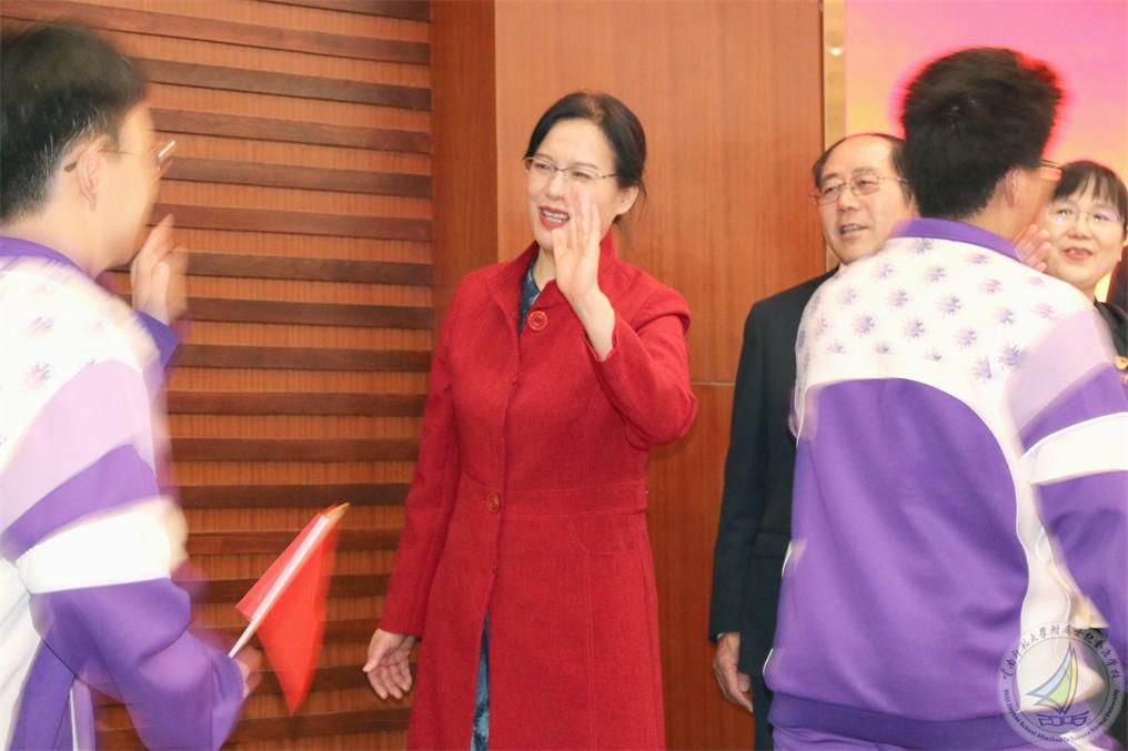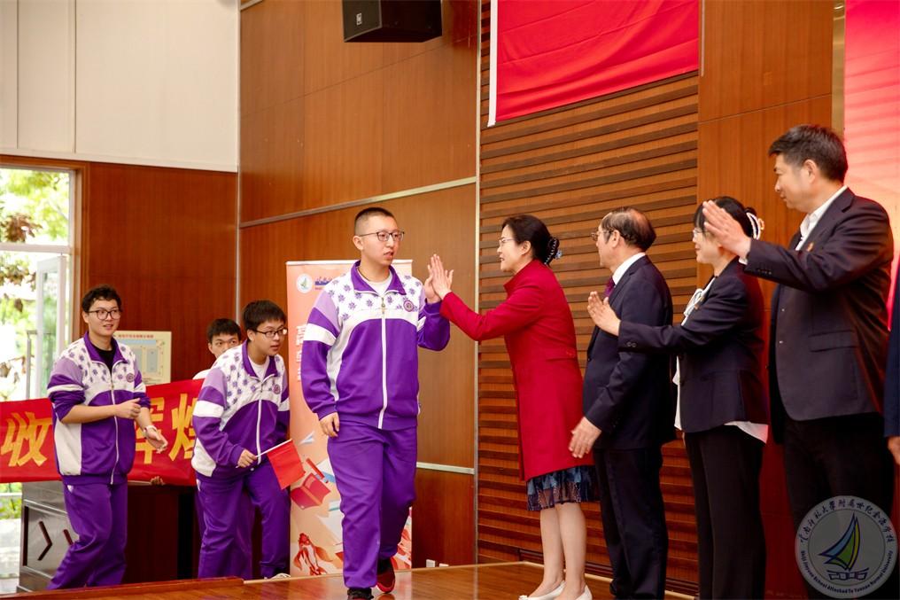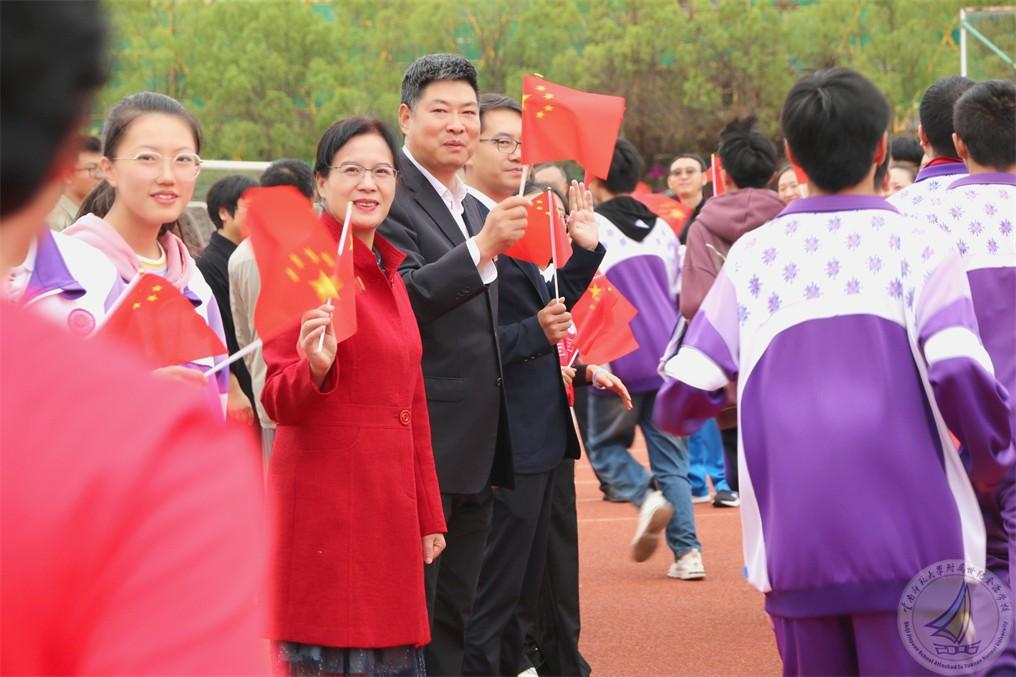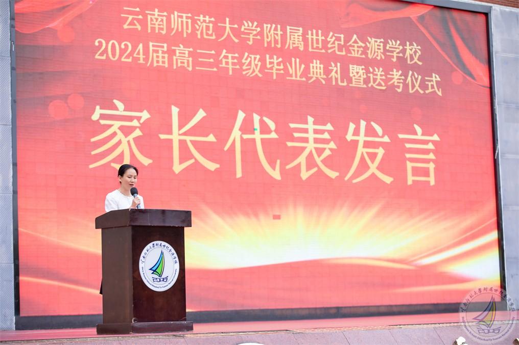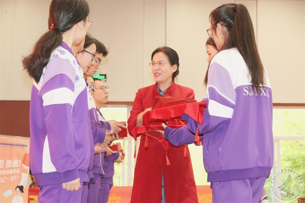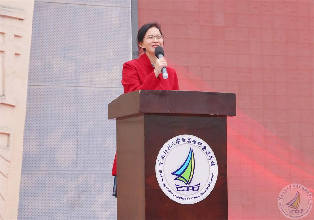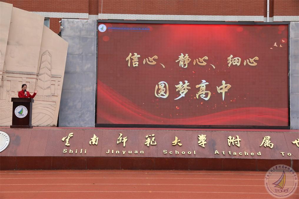 首先,王英书记上台致辞,为同学们献上祝福。她谈到:生命是条线,高考是个点。人生的路口有很多,高考无法对同学们作出定义;而每一个路口的背后,也总有父母的等待与陪伴。王书记勉励同学们静心沉气,保持状态,保持自信,愉悦从容,以最好的姿态迎战高考。最后,她以三个词鼓励同学们:信心,精心,细心,祝同学们圆梦高中!这正是:“鲲鹏一日扶摇上,骐骥千里自在回。任尔东西南北风,金源才俊竞光辉。”
