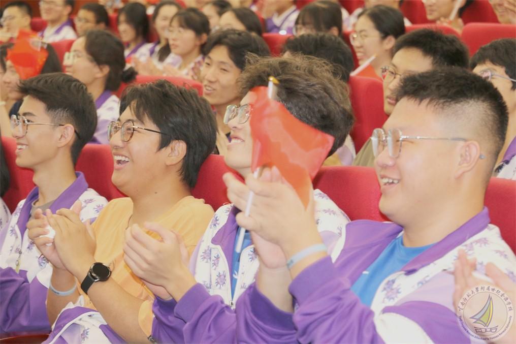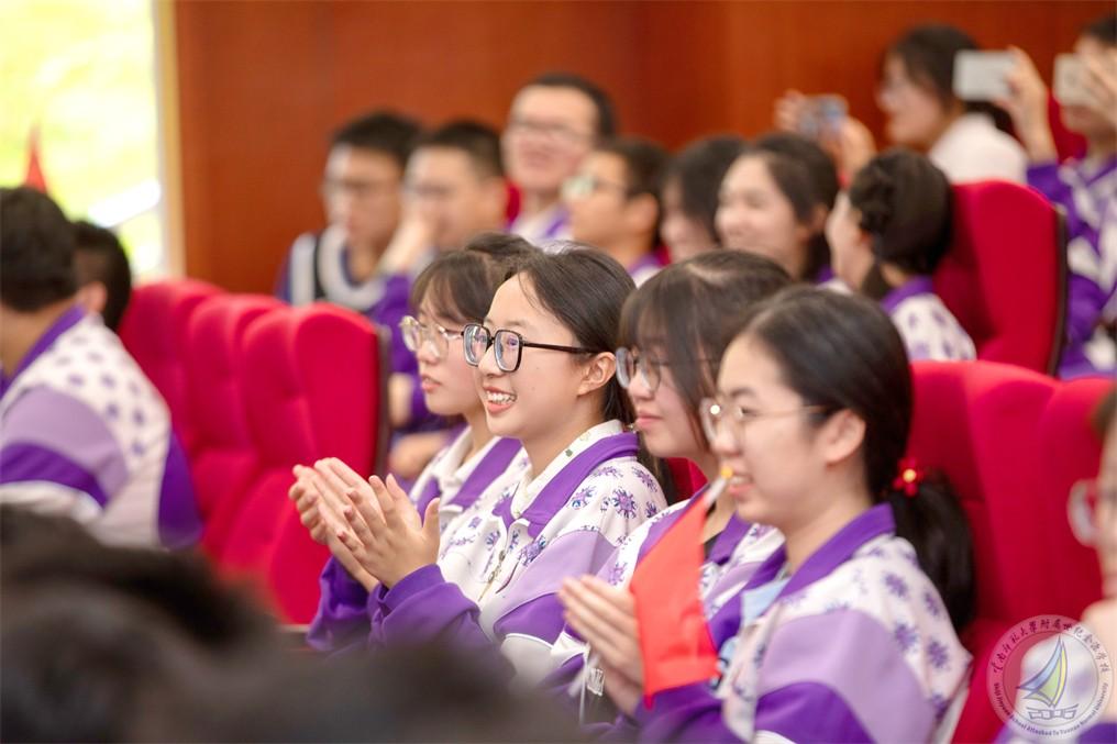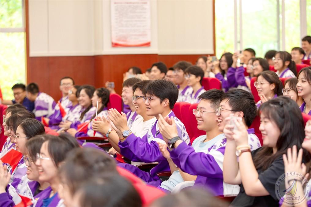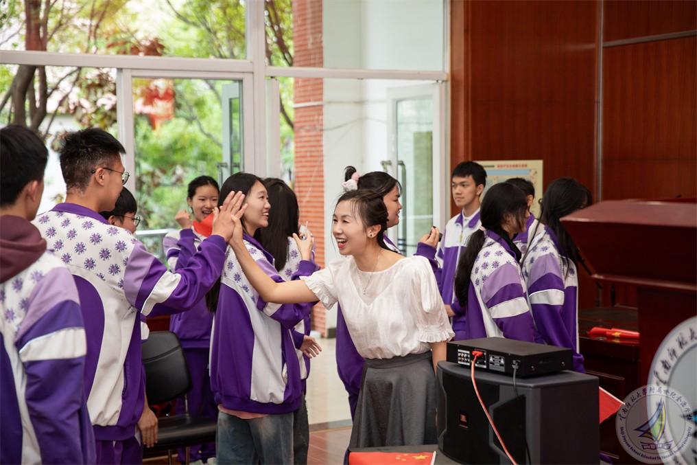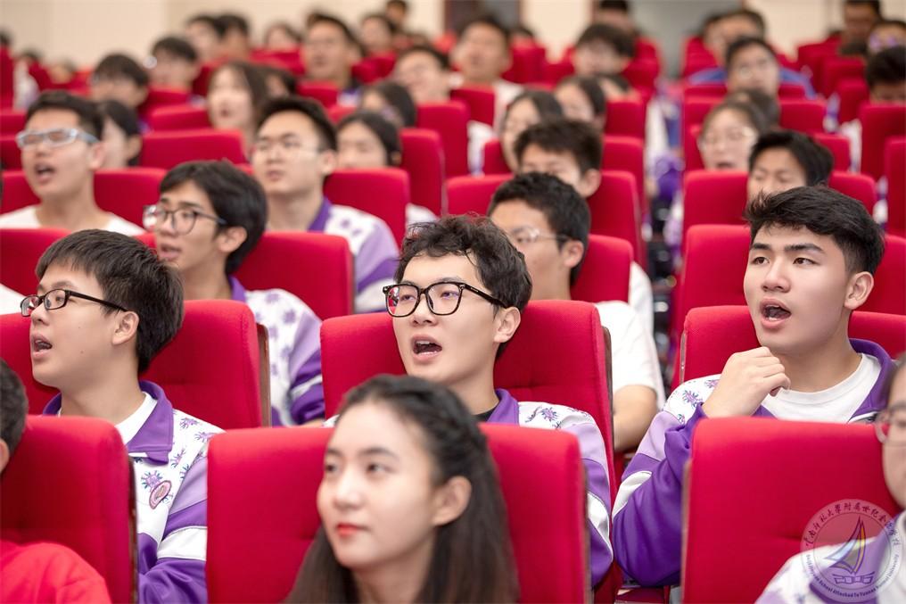 在踏上行程前,高三的老师们也为同学们带来了最真挚的叮咛和祝福。“带上信心,心无旁骛,全力以赴!”“厚积薄发,你熬过的夜,流过的汗,一定会变成你想要的结果。”“无论是主动语态还是被动语态,希望你能有个好心态。”“不断前行的你们,一定能走得更远,飞得更高。”“人生路还长,慢慢走,欣赏吧。”视频里,老师们从各自的学科领域出发,带来了风格迥异的寄语,引得同学们欢呼、大笑,全场气氛达到了最高潮。