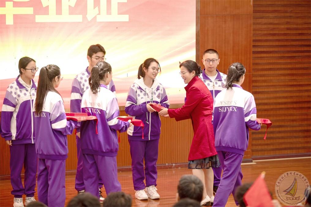 情到深处,难以自持。随着徐欣萌同学发言结束,同学们的激情已达到高潮。主持人李文江老师趁热打铁,以激昂的语调,铿锵的声音引领全体同学一起为自己呐喊壮行。而后,王英书记为各班颁发毕业证书,象征着高中生活画上句号,也代表着同学们将装着知识和智慧,载着信念和梦想踏上人生的旅途!