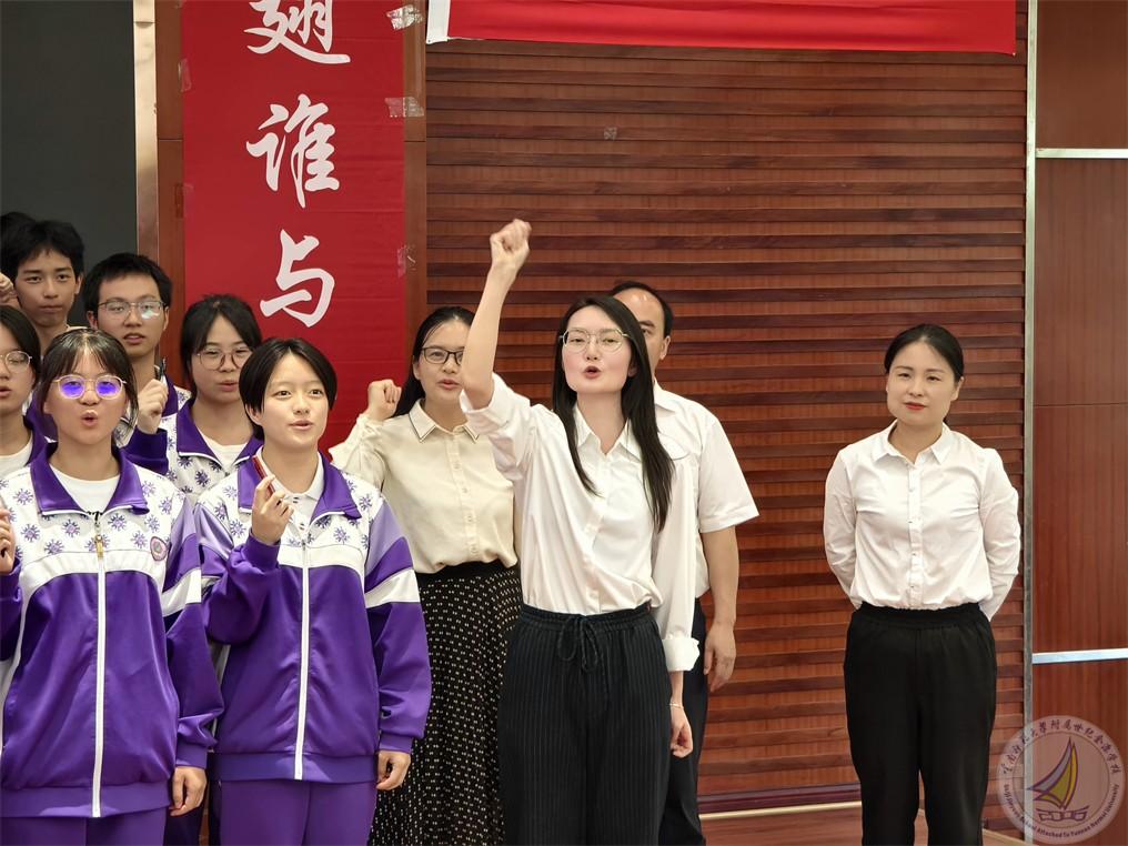最后,全体师生进行了庄严宣誓。他们高举右手,庄严地许下承诺:将以更加饱满的热情和更加坚定的信念迎接高三的挑战,为实现自己的梦想而努力奋斗!