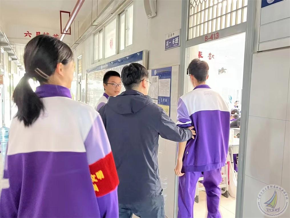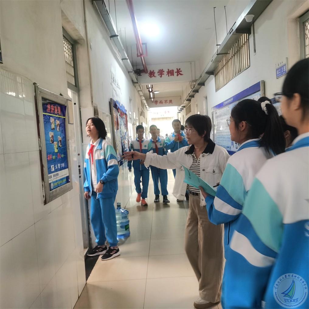 通过集中培训增强了同学们的安全意识、增长了安全知识,接下来就由各学段负责安全管理的老师带领大家把学到的知识运用到实际的安全管理工作当中。小学段、初中组、高中组分别由欧阳明老师、陈剑屏老师、代锦春老师带领安全员检查教学楼、教室,把安全工作落实到实处。
