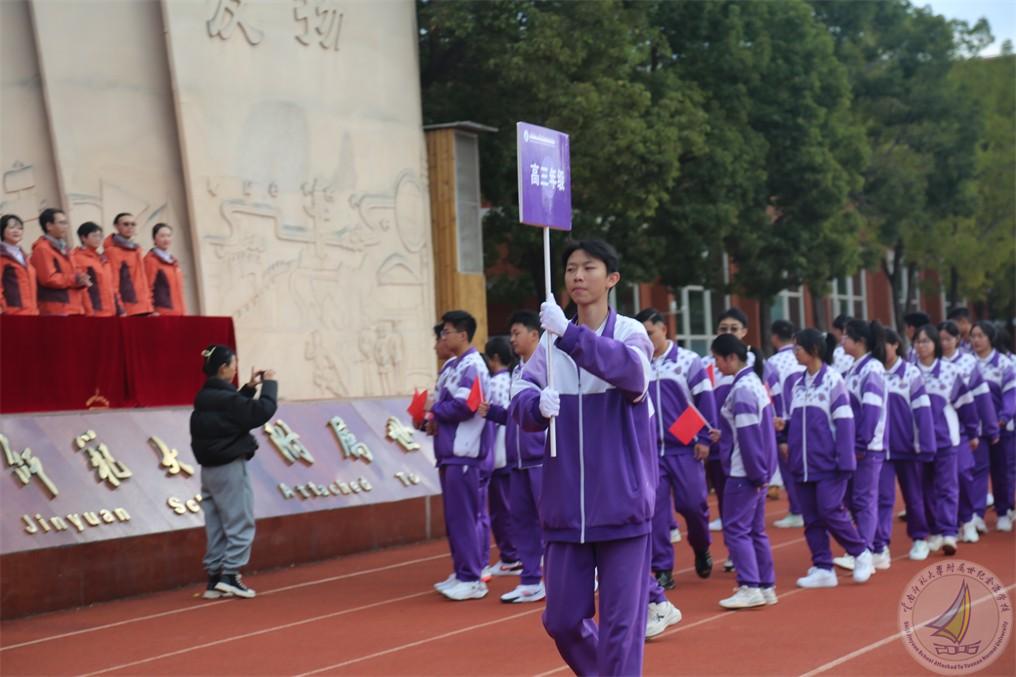步于绿茵草地之上,驰于茫茫苍穹之下,迎着冬日暖阳,每一个年级的方阵正迈着整齐的步伐走向赛场。
