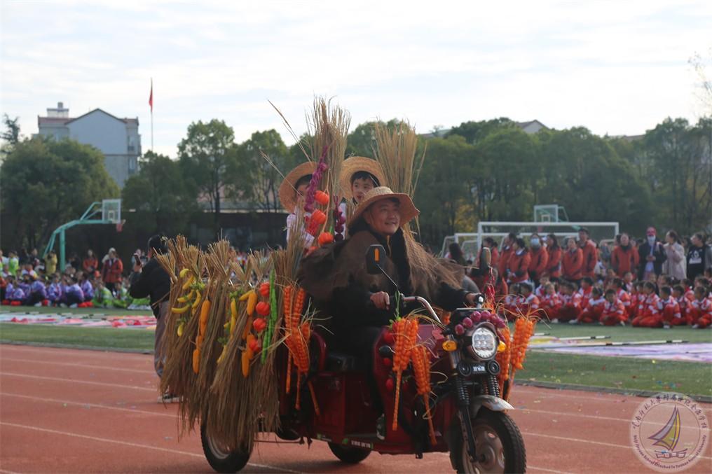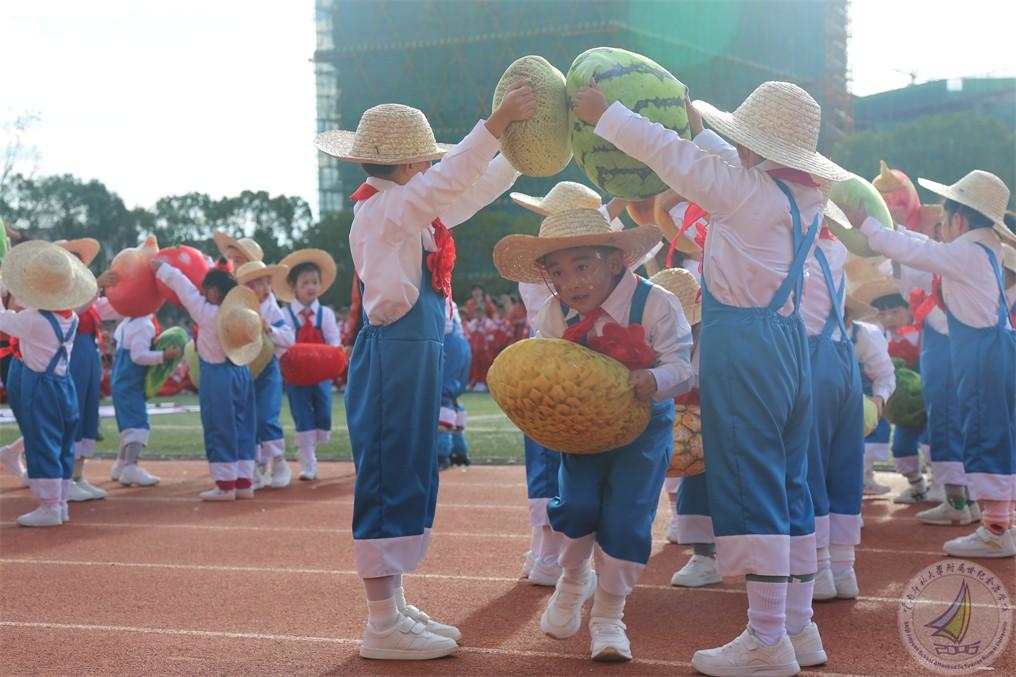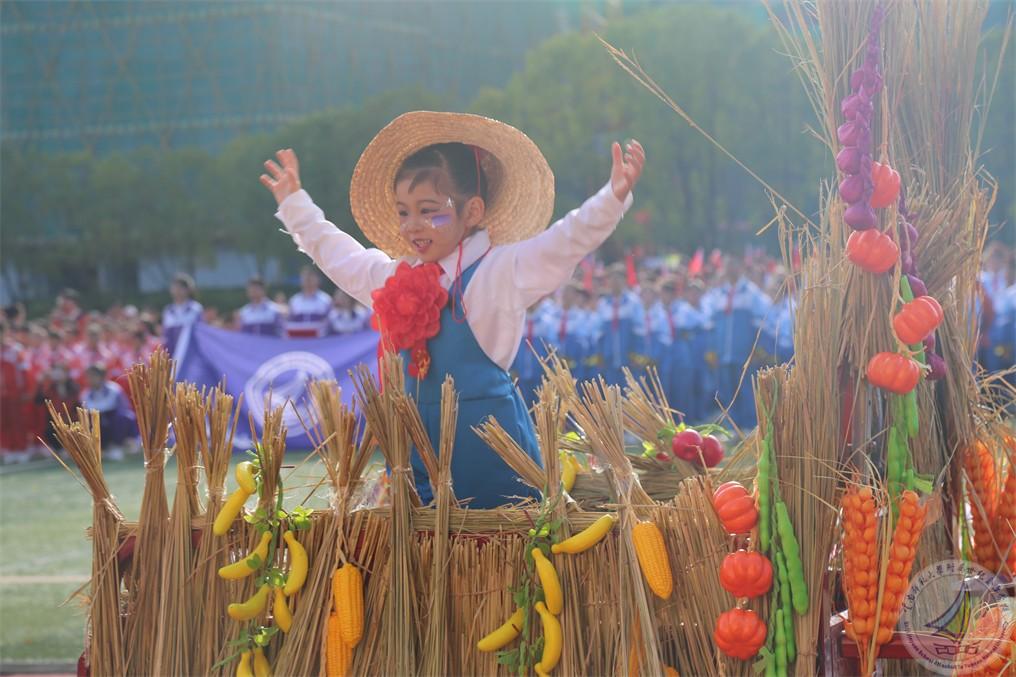 幼儿园方阵恰似一群小福娃,5岁的他们,携着庆丰收的喜悦与劳育的初萌,欢欢喜喜地走来啦。手里的稻谷、麦穗、西瓜、苹果,还有脸上的笑容,都传递着稻花香里说丰年的喜悦。