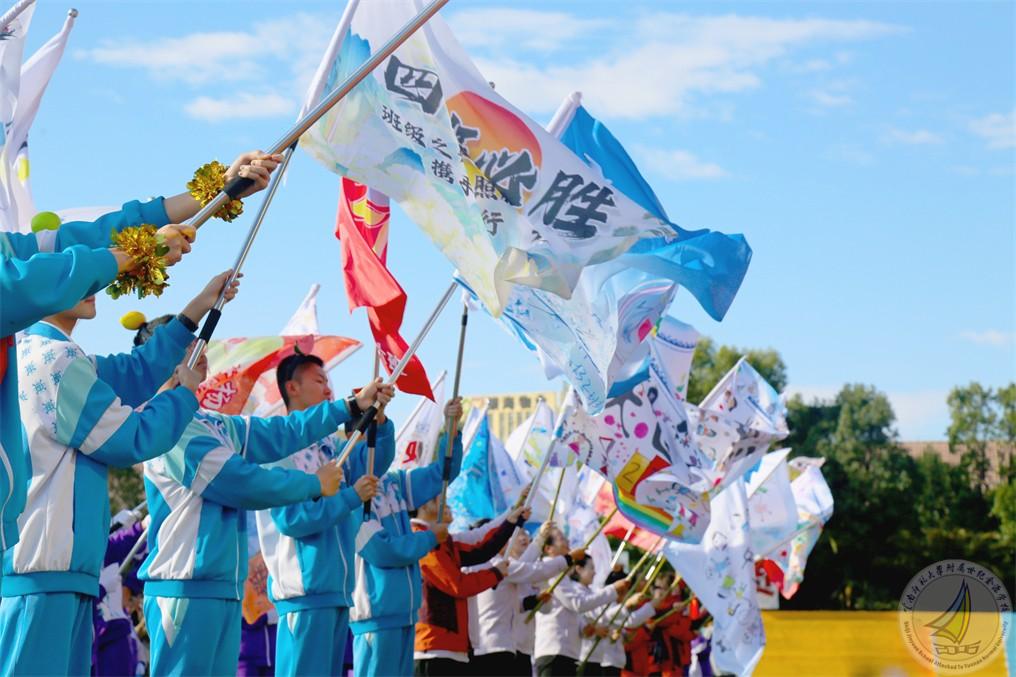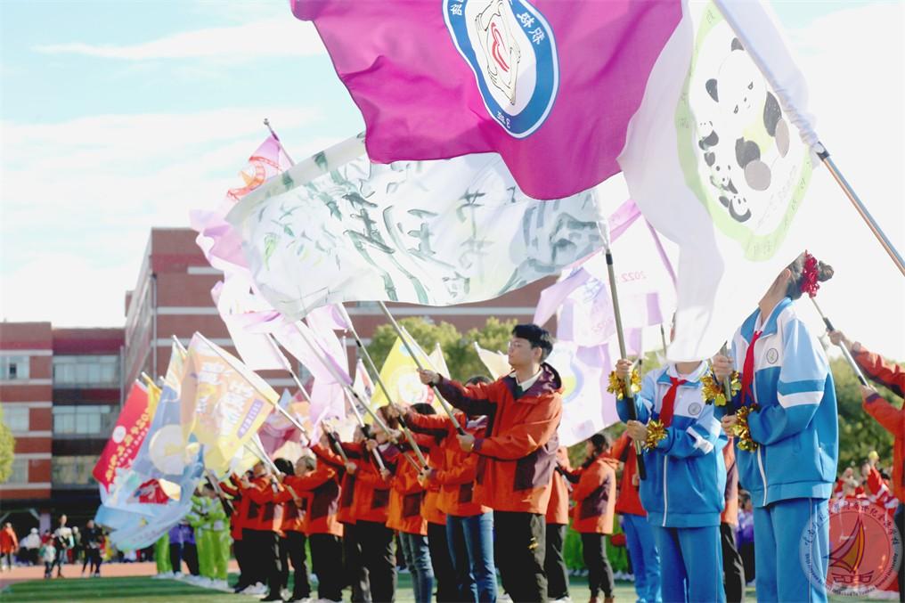 绿茵操场红旗飘,矫健步伐传力量。飘扬的红旗迎风而舞,绿茵场上,彩旗方阵的队员们步伐如展翅高飞的雄鹰,拥有直击长空的魄力与勇气。