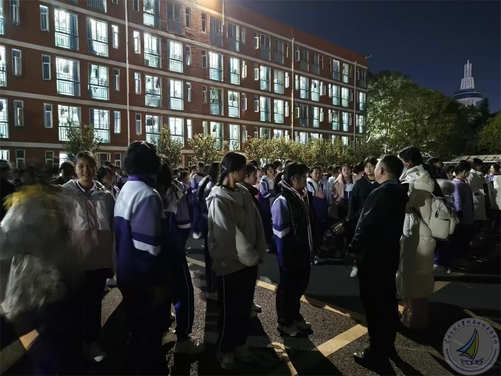 22时03分,警报声骤然响起,全体住宿学生在班主任及宿舍管理人员的有序组织与引导下,镇定而迅速地从宿舍楼疏散至既定的集合地点。演练全程秩序井然,行动迅速,协作默契,实现了既定目标。