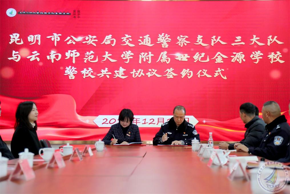 为全面筑牢校园安全防线,构建和谐平安校园,12月25日下午,我校与昆明市交警支队三大队成功举行警校共建协议签约仪式。学校党委书记王光兴,校长陈静琳,副校长赵占国、李文江、唐金彬,昆明市公安局交警支队三大队大队长黄子雄、教导员刘云华、副大队长叶文、张少荣等领导出席签约仪式。学校党委副书记、纪委书记杨林主持签约仪式。