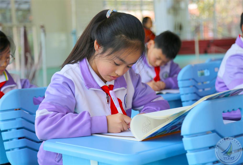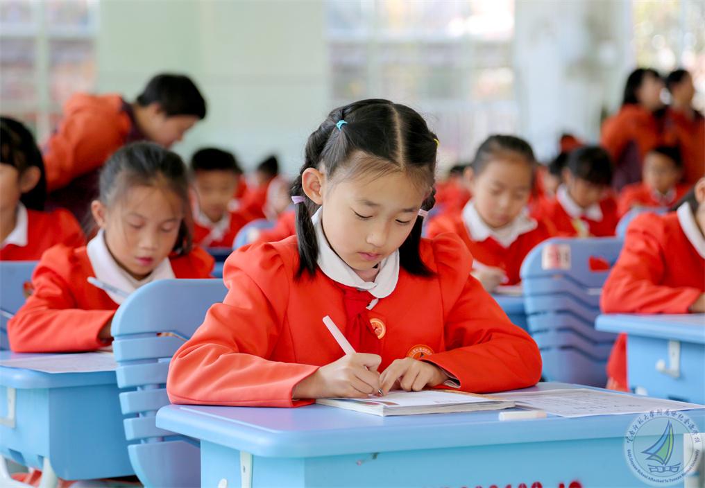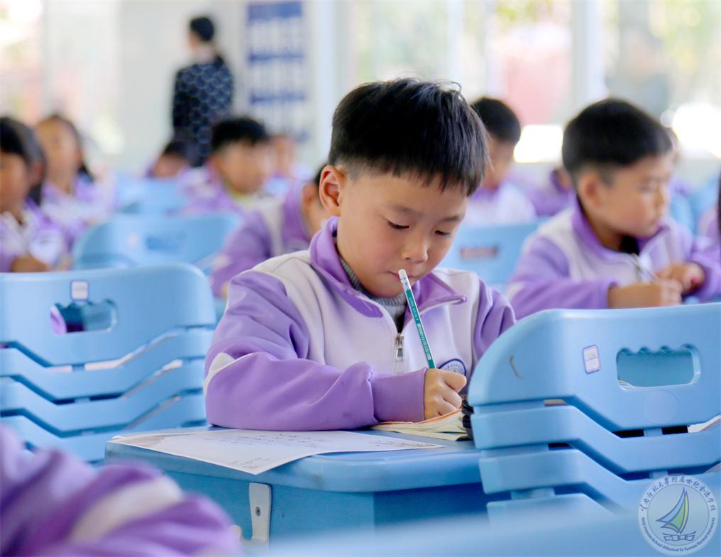 一至三年级的小同学们坐姿端正,握笔规范,用铅笔书写童真,横竖撇捺间尽显童趣与认真。