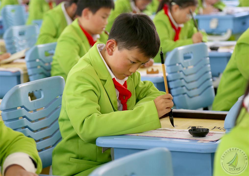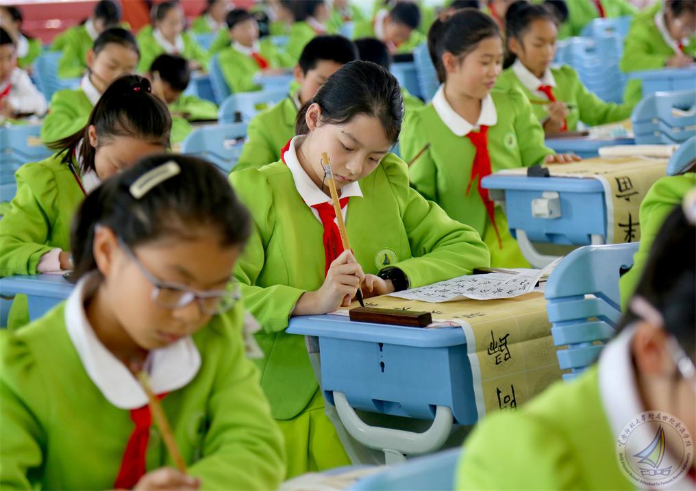 五、六年级的孩子们拿起毛笔,蘸墨挥毫,一撇一捺皆韵味,一点一顿皆风骨,在宣纸上诉说着对传统文化的敬仰与传承。