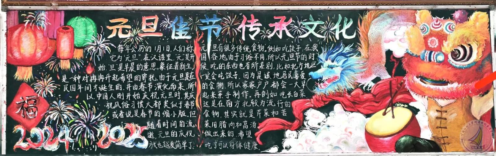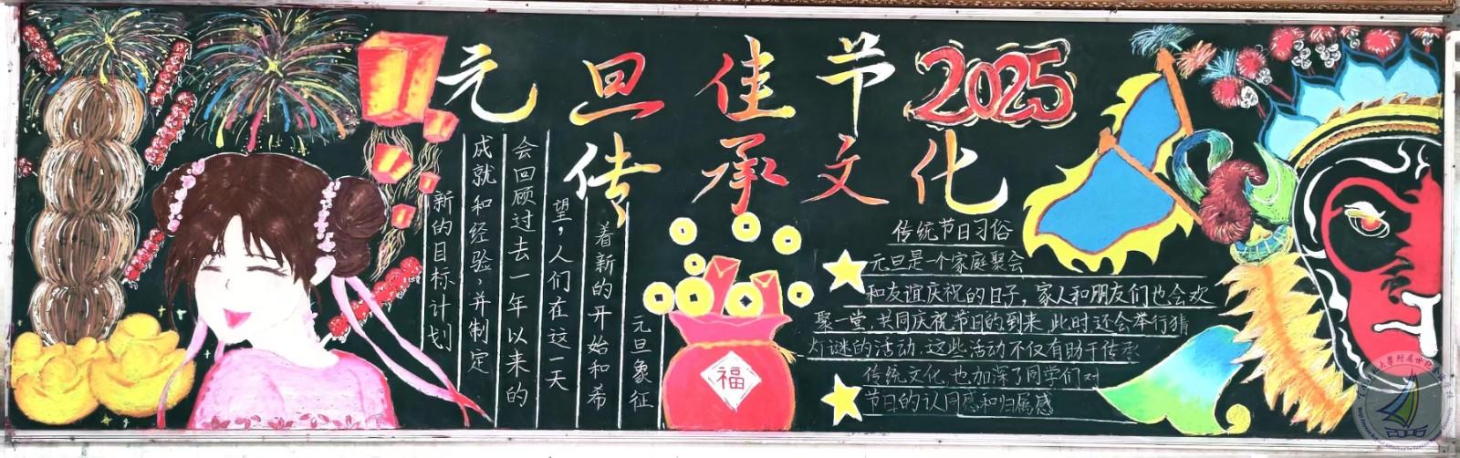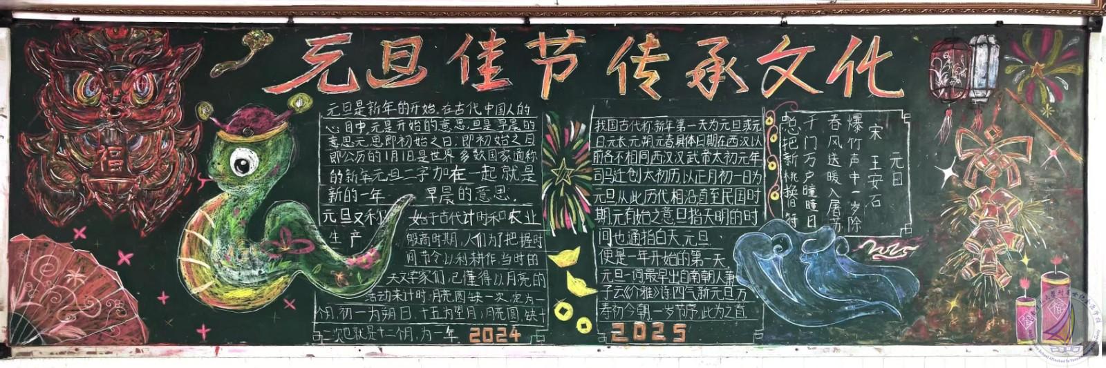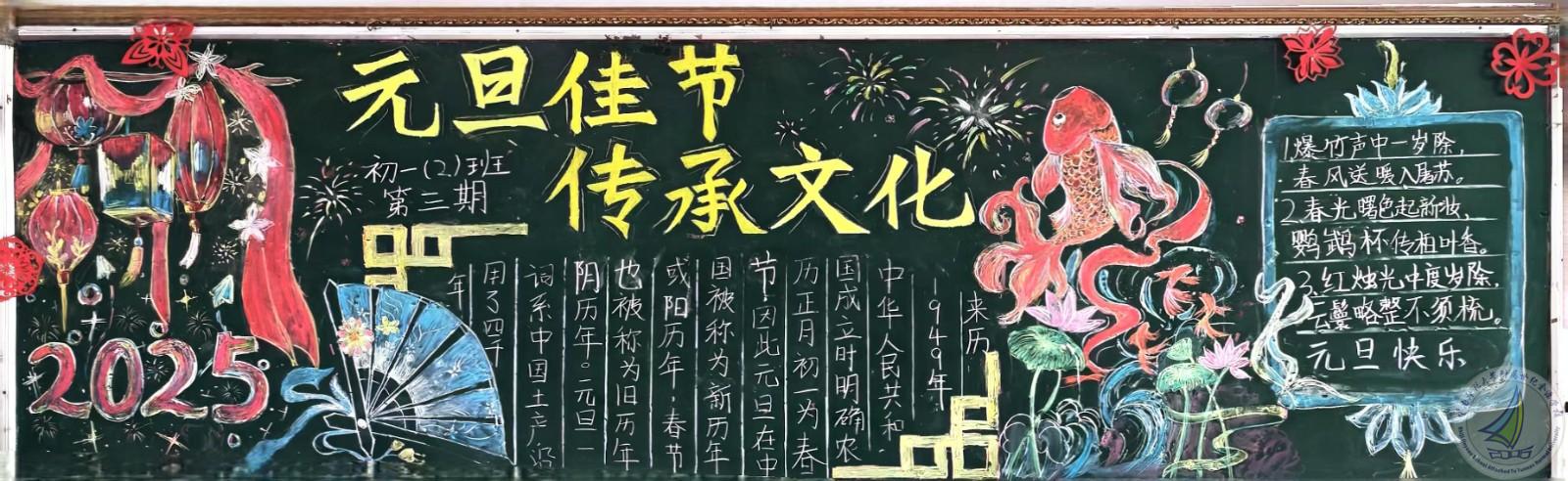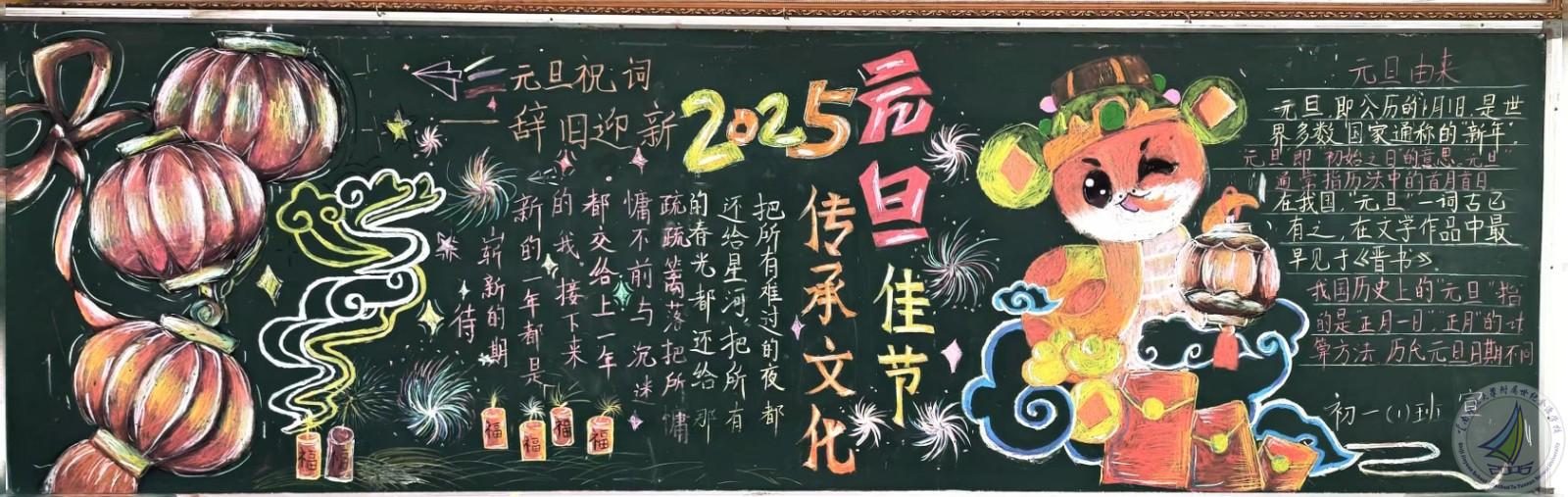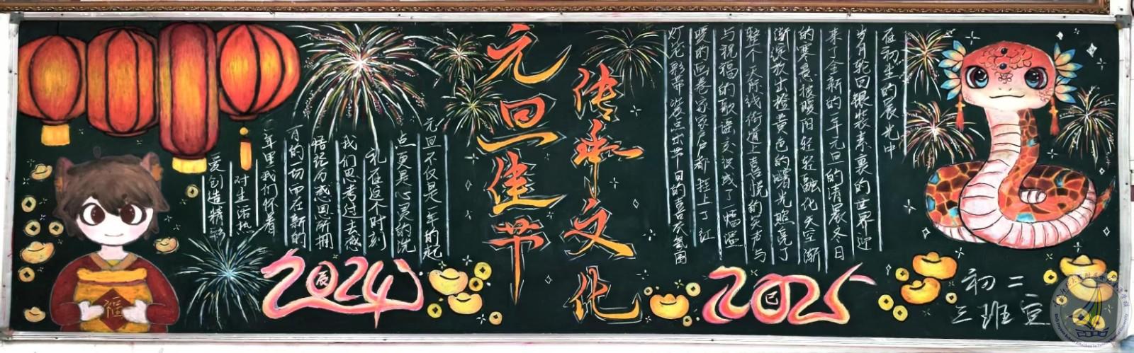 时光流转,2024年已步入尾声,元旦即将到来。在这新旧交替之际,云南师范大学附属世纪金源学校中学段初中组积极开展了以“元旦佳节 传承文化”为主题的12月黑板报评比活动。此次活动旨在引导全校师生在年末之际努力学习和工作,以饱满的热情和积极的态度为新的一年开好头。评委们本着客观公正的原则,对各年级各班黑板报从版面设计、栏目内容、整体效果等方面进行了逐项打分,最终各年级评出2个一等奖、4个二等奖、2个三等奖。让我们共同来欣赏一下吧!