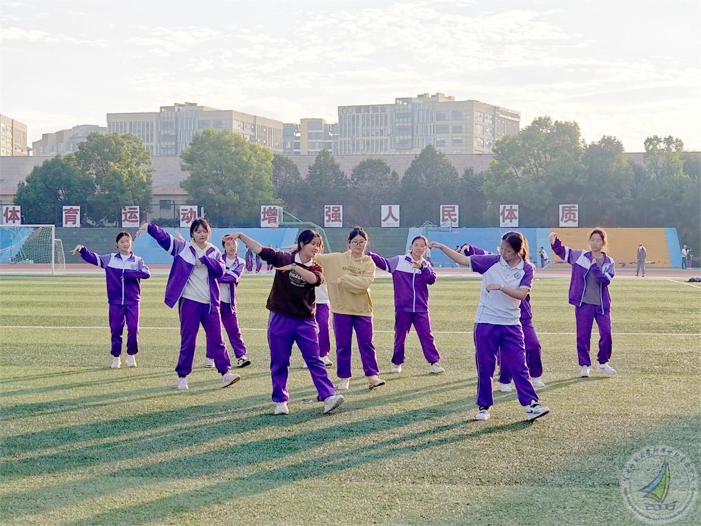 在田径场的绿皮草地上,舞蹈社的同学们在董苏靓和唐奥萍同学的带领下随着音乐的节奏翩翩起舞。舞蹈社不仅让同学们学会了各种舞蹈技巧,提高了身体协调性和音乐感,大家更加自信地展现自己。