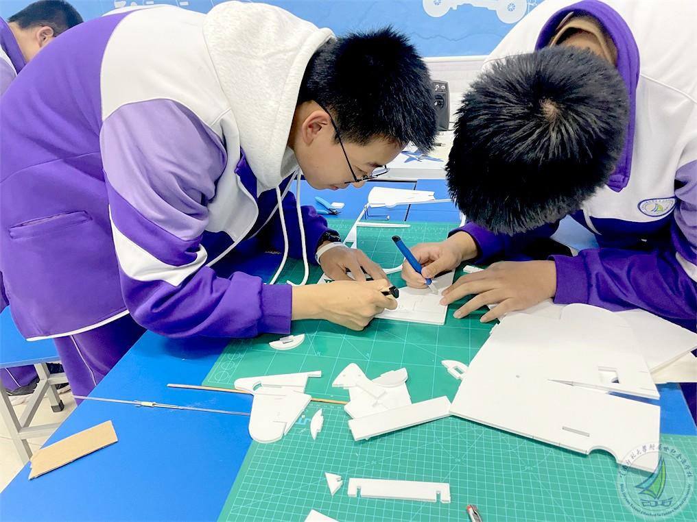 航模教室里,航空模型社的成员们在刘奥和文祥翔同学的带领下制作和调试航空模型。每一次对模型飞机的拆解和组装,都是他们对梦想的一次勇敢尝试,也是对知识的一次深入探索。