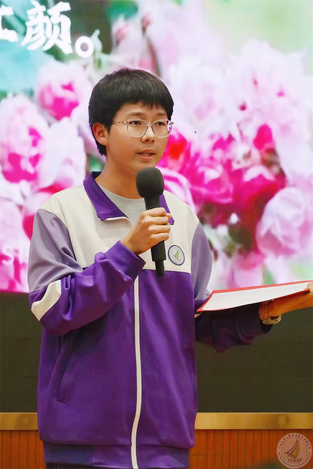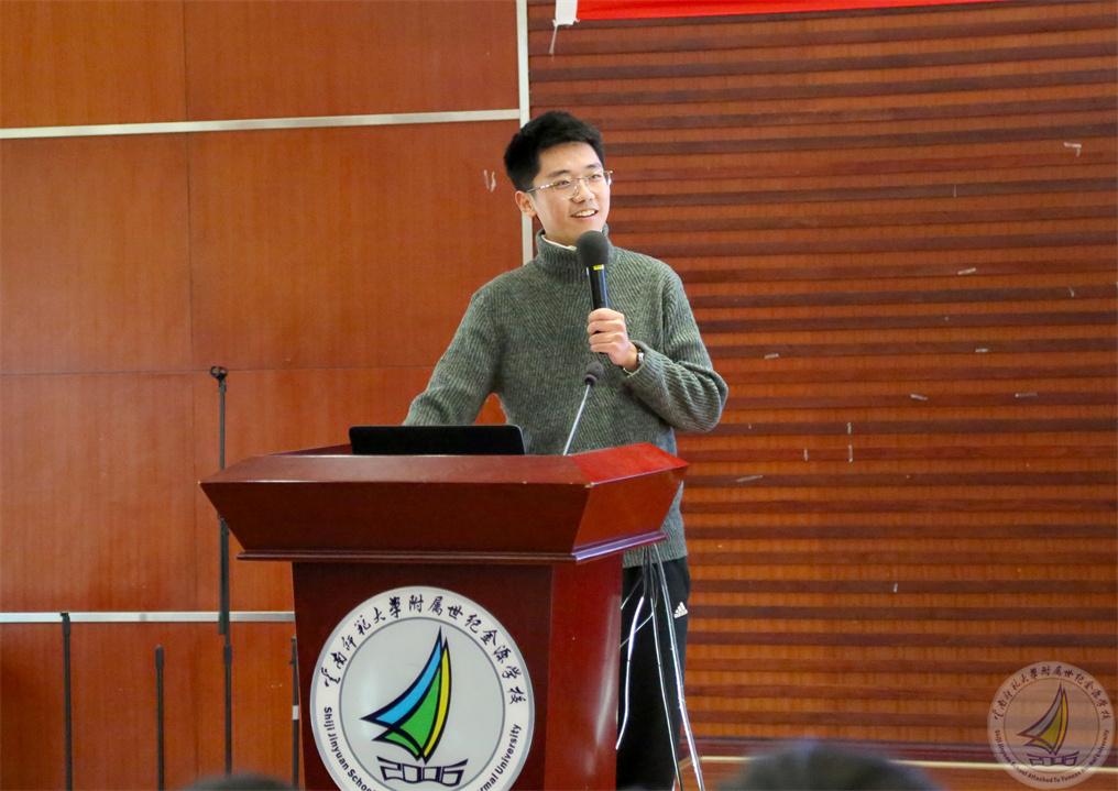 三年前,同样是在这个报告厅,在座的高三学子当初还是初三年级的青涩少年,面对即将到来的中考,心中满是迷茫与憧憬。而钱俊希,当年作为高二的学长,为学弟学妹分享经验,并向学弟学妹发出世纪金源之约,共赴青春之邀!