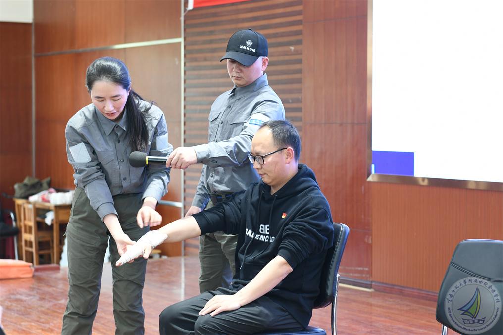 蓝天救援队队员通过理论讲解与实操演示,向全体教师详细介绍了正确的心肺复苏操作步骤,对如何判断意识、胸外按压、人工呼吸等关键环节进行模拟演练,并结合实际案例,针对校园常见的意外伤害,通过互动演练方式,引导老师们掌握止血包扎等常用基本技巧。