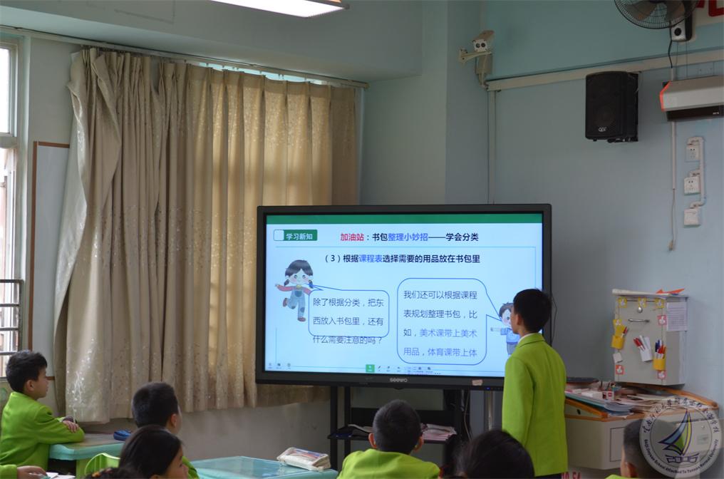 同学们纷纷上台,交流自己整理书包、减轻重量的小窍门。有的同学分享了利用文件袋分类存放不同学科资料的方法,找东西一目了然,还避免了书本相互挤压、折损;有的介绍如何巧妙利用书包隔层,将文具、水杯等固定位置放置,防止书包重心不稳、局部过重。