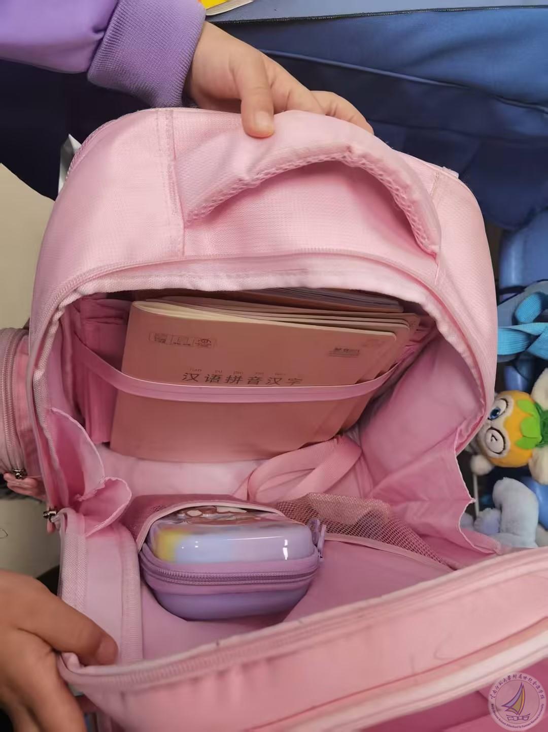 定期清理书包:设定每周一次的书包清理日,同学们在这一天将书包内过期的通知、破损纸张、用不到的杂物等清理干净,保持书包内部整洁有序,也能进一步减轻重量。大队部还为此组织了“最整洁书包”评选活动,激发同学们保持书包轻量化的积极性。