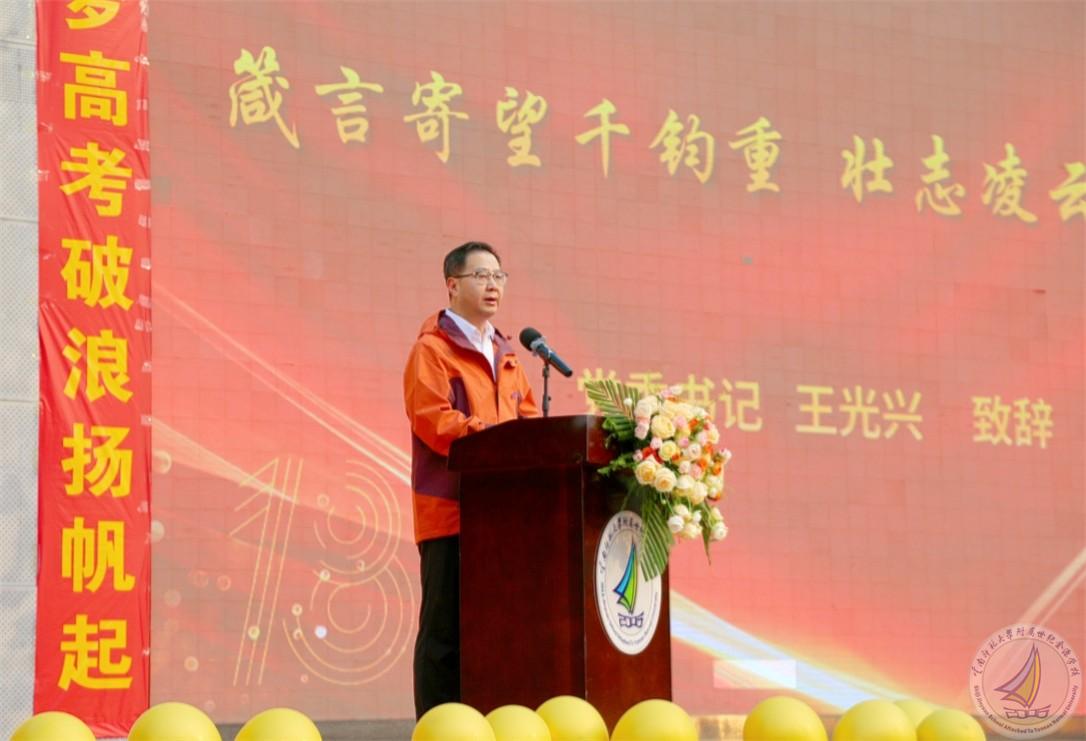 王光兴书记给高三学子们上了一堂生动的“思政课”。他在致辞中强调,十八岁意味着责任与担当,也肩负着时代赋予的重任,希望同学们把个人理想融入国家发展大局,心怀“国之大者”,将“刚毅艰卓”的联大精神铭记于心,外化于行,秉持家国情怀,勇担时代使命,为实现中华民族伟大复兴的中国梦贡献自己的青春力量!