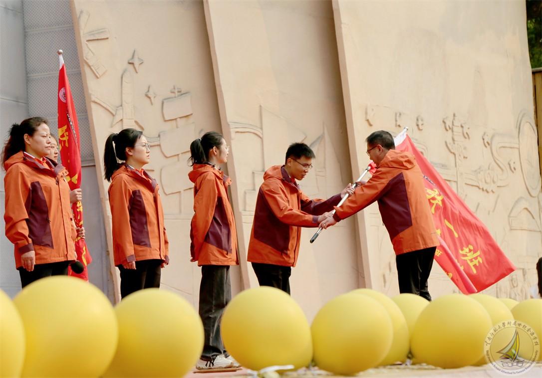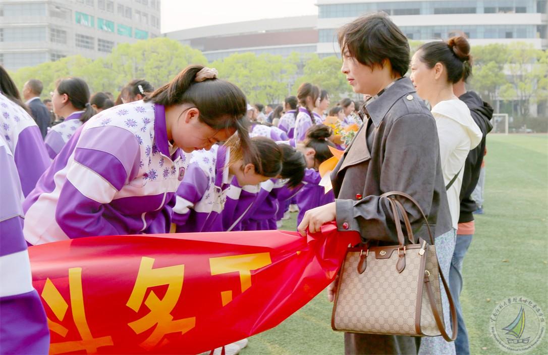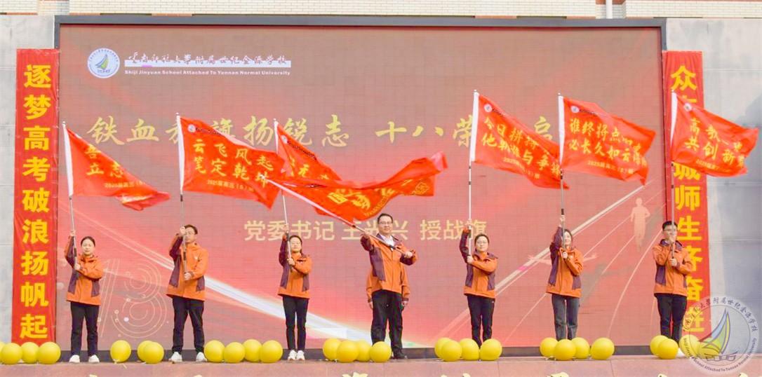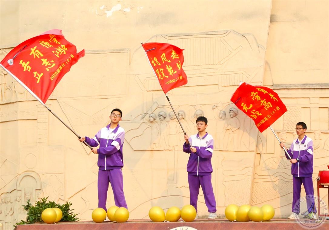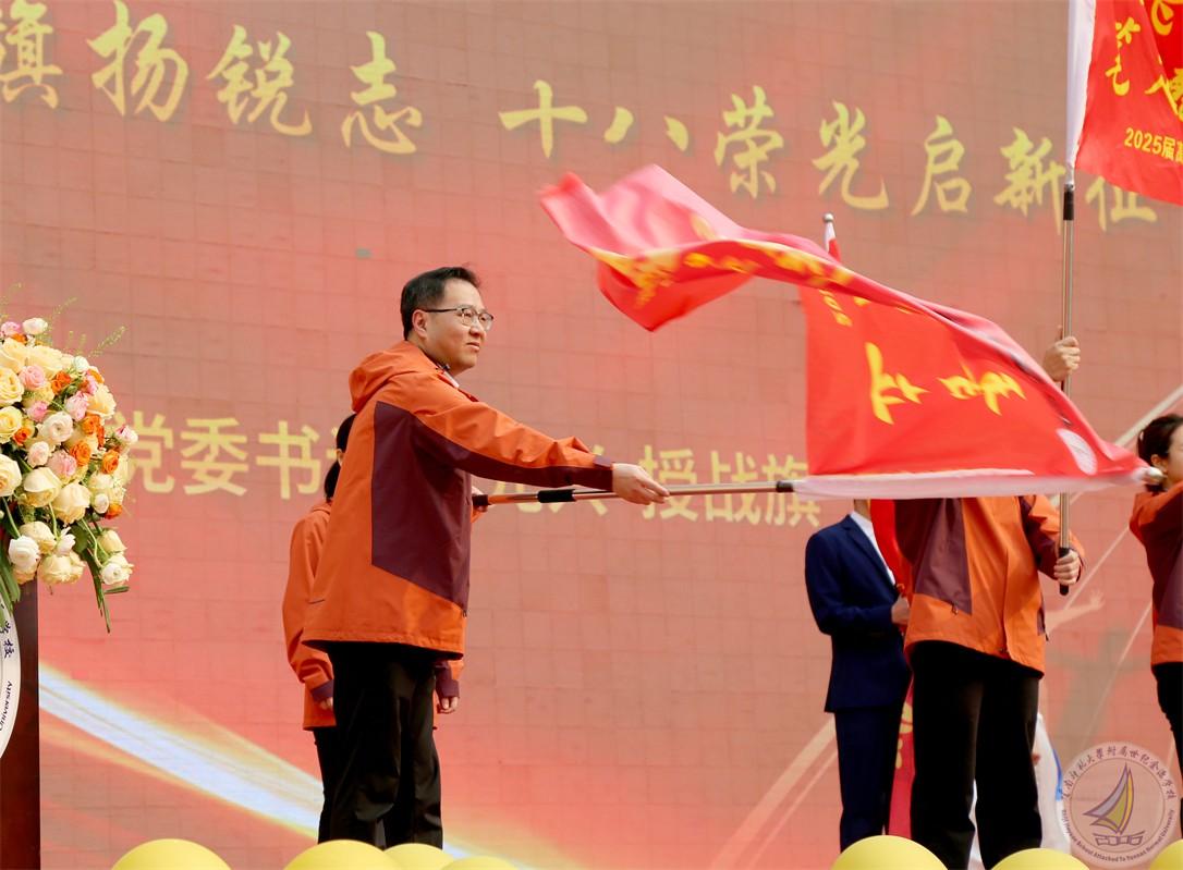在铮铮誓言声中,王光兴书记为2025届高三年级授予高考战旗!全体师生高声呐喊:“高考必胜!”