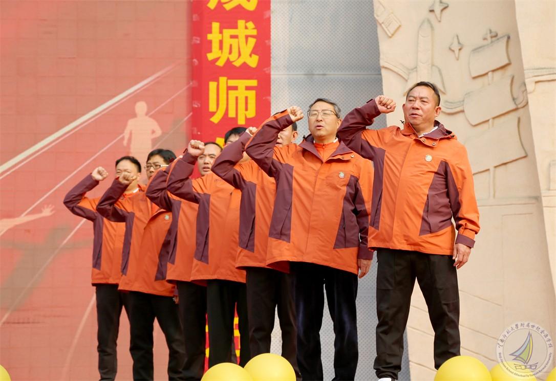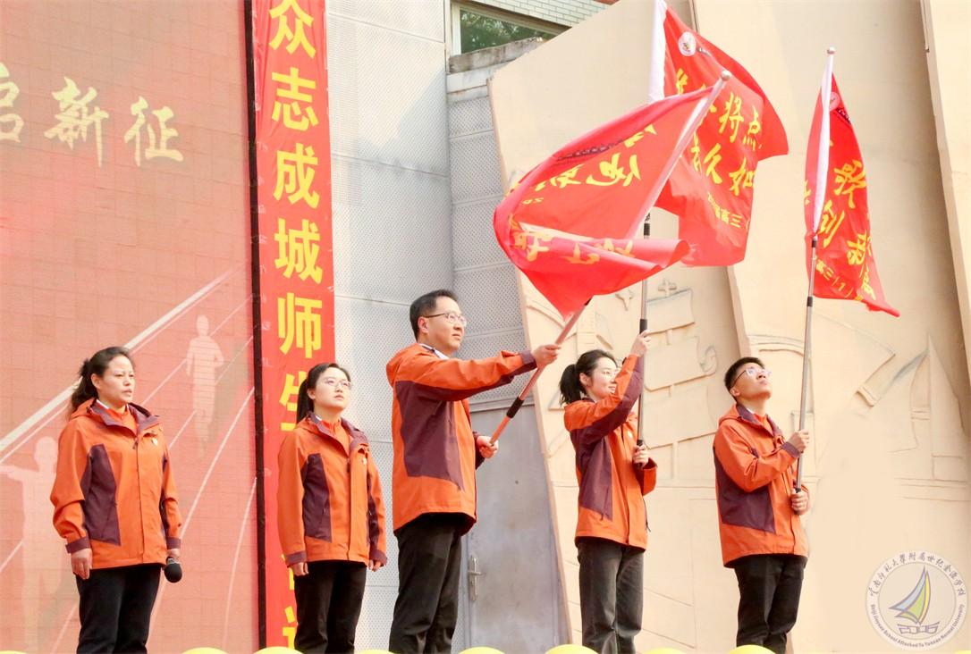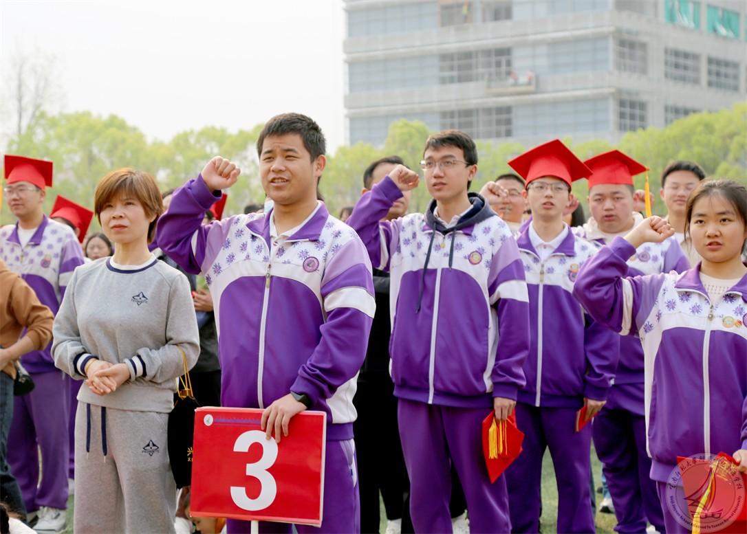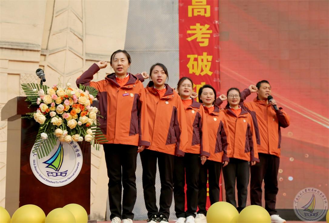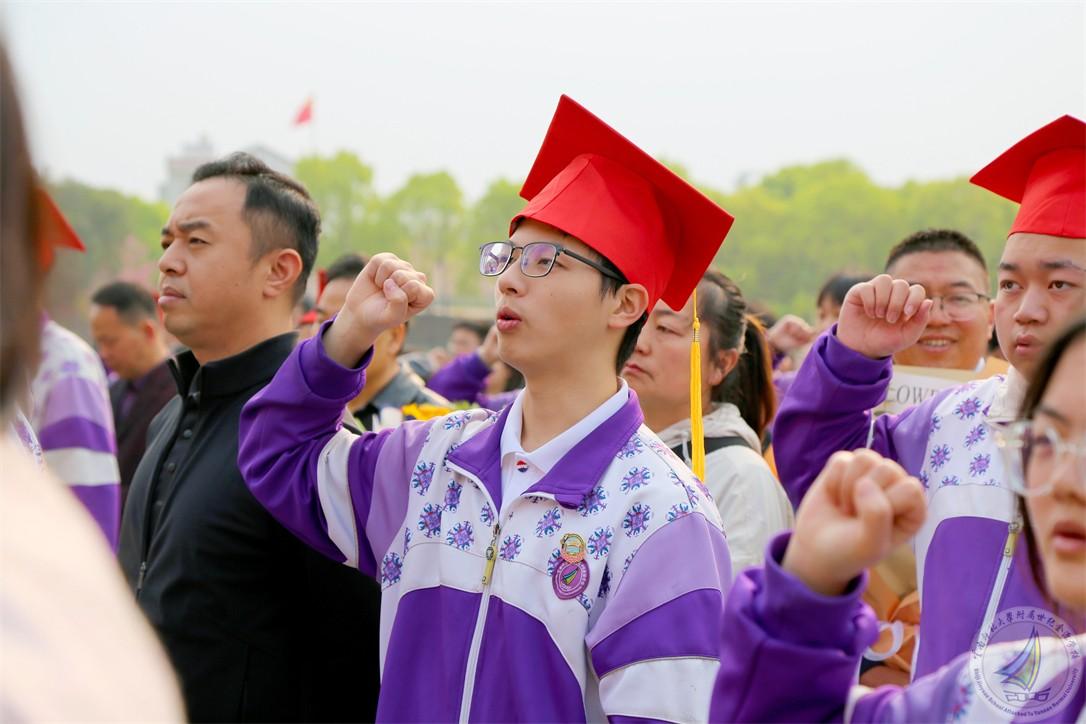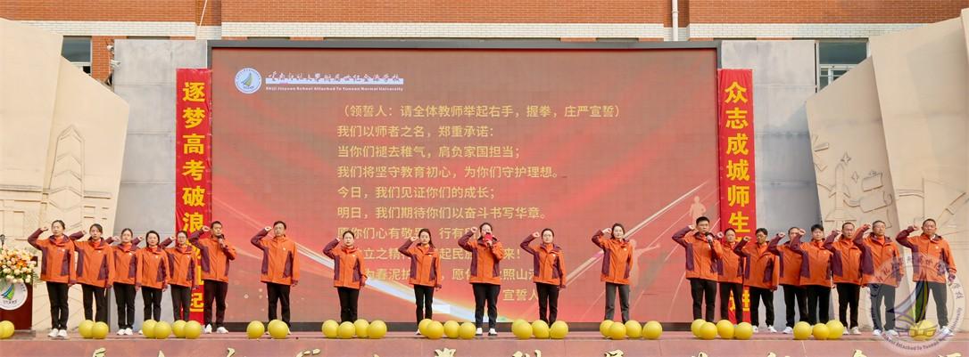 高三年级全体教师坚定而洪亮的宣誓声响彻校园:愿你们以独立之精神,担起民族之未来!我们甘为春泥护桃李,愿化星火照山河!