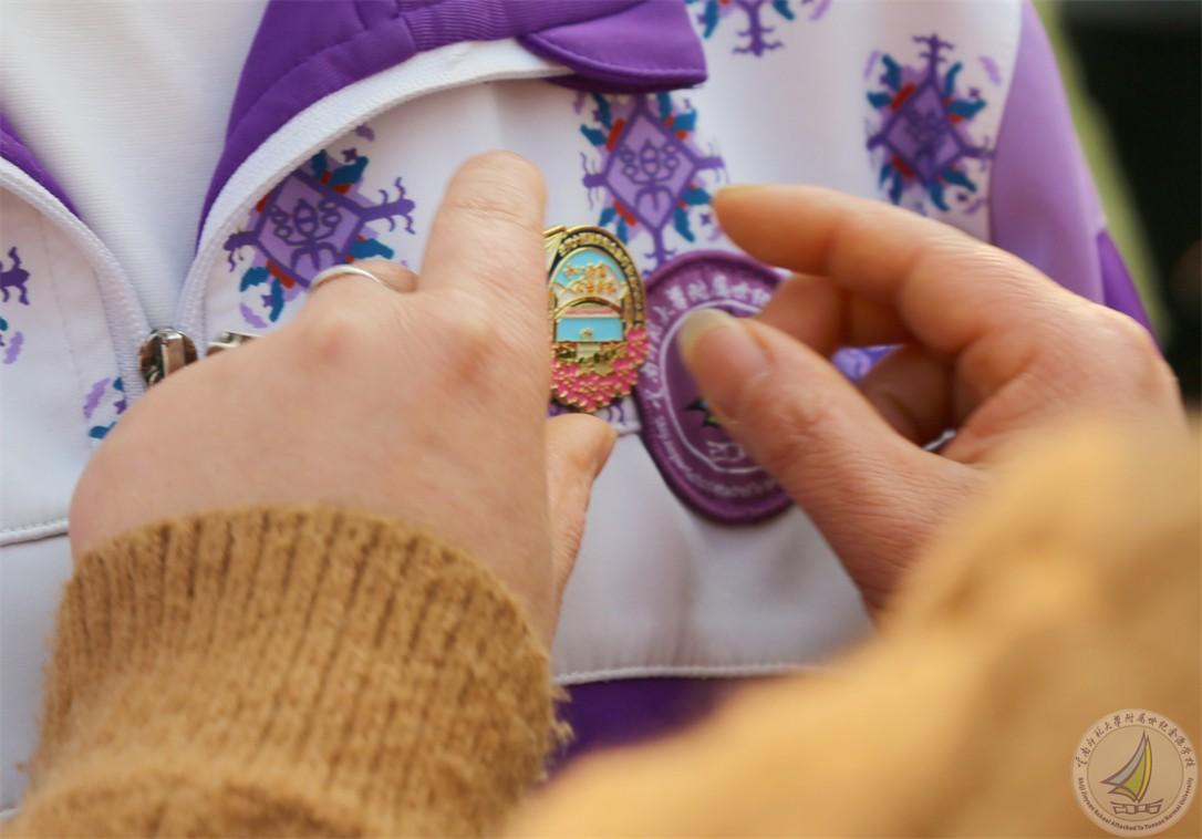 学校为同学们准备了一份特别的礼物,当爸妈为他们戴上这枚精美的徽章时,“今日我以校为荣,明日学校以我为荣”的自豪感也在他们心底油然而生!