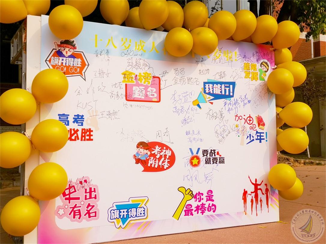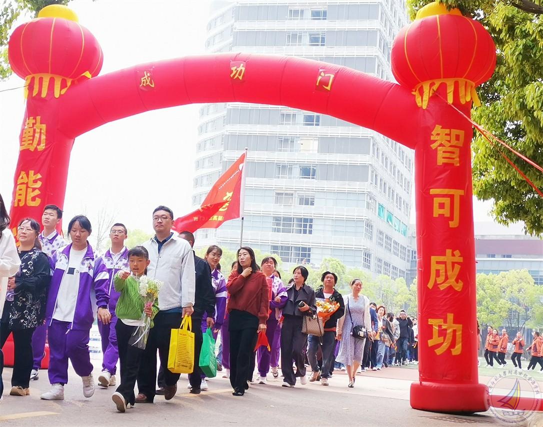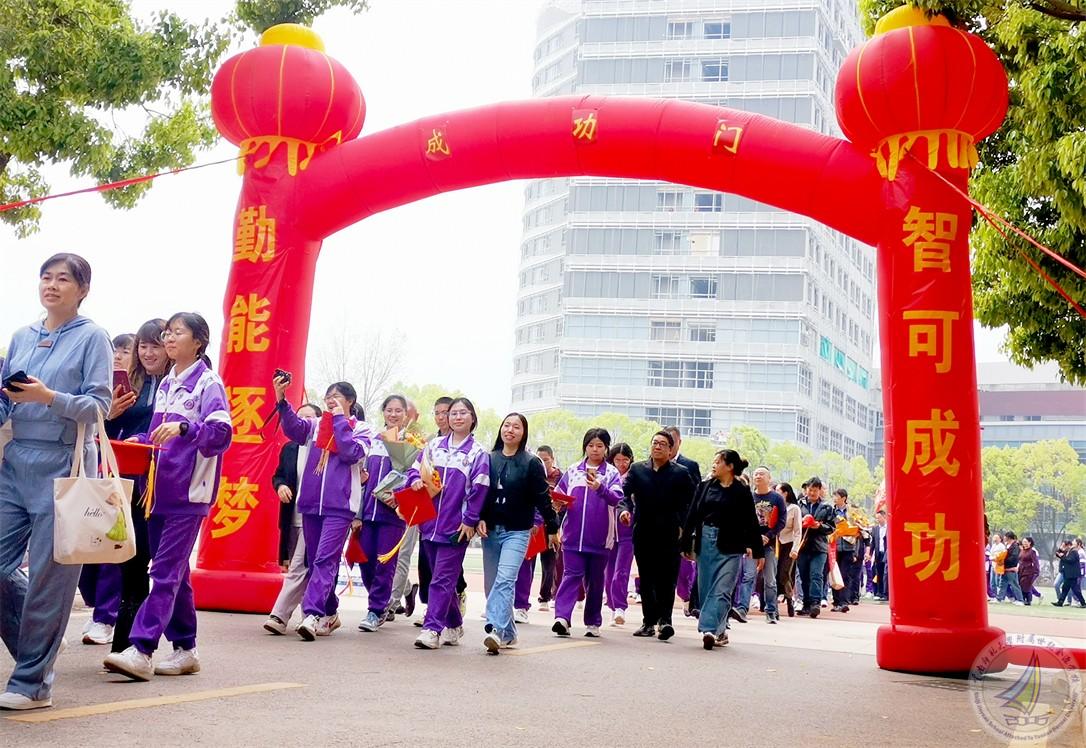 战旗在手,徽章在胸!全体高三学子昂首阔步穿过成功门!愿你们今日跨过成功门,明日金榜题名时!