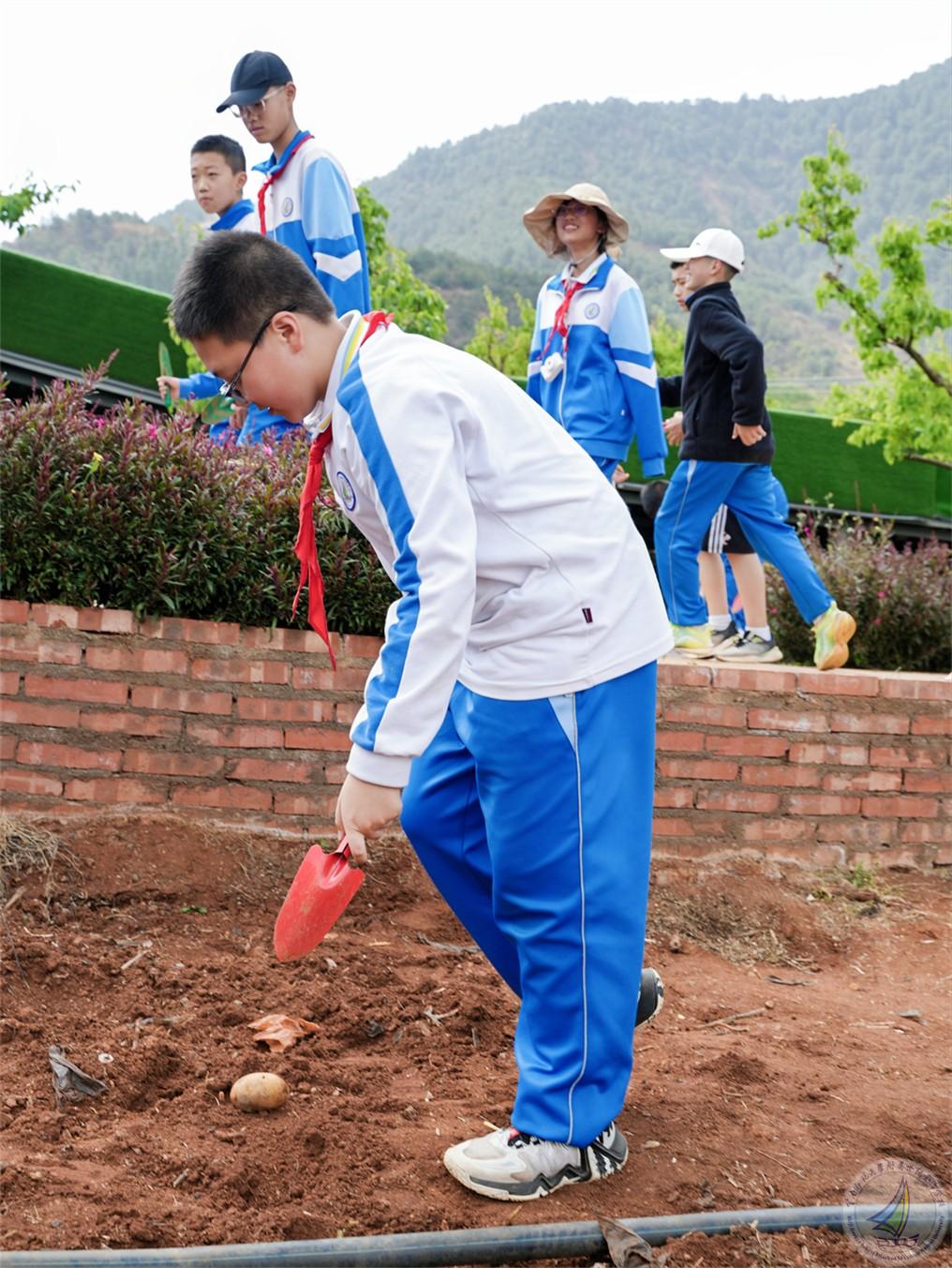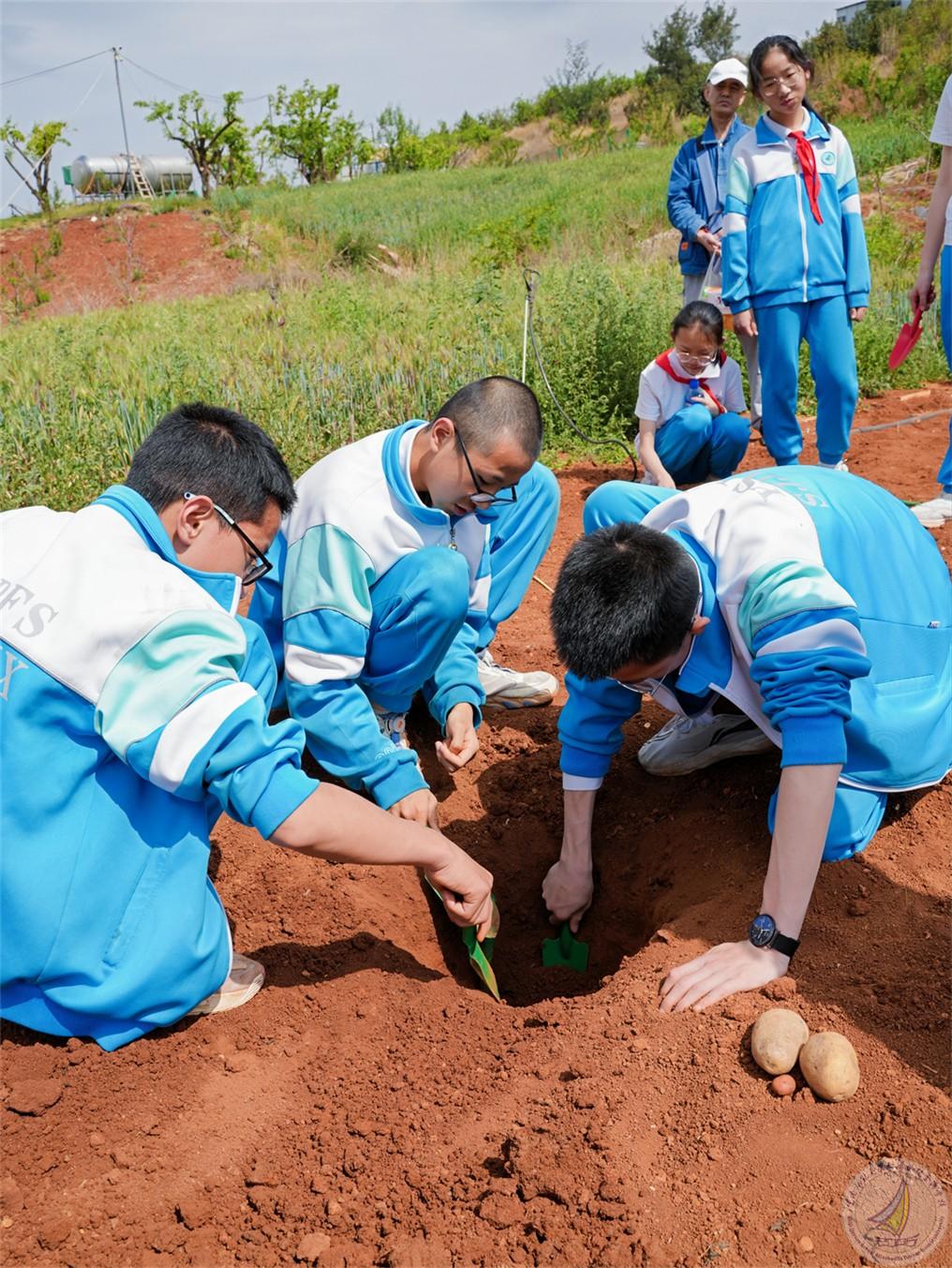 在土豆种植区的同学们按捺不住内心的激动与兴奋,迫不及待地投身于丰富多彩的劳作之中!