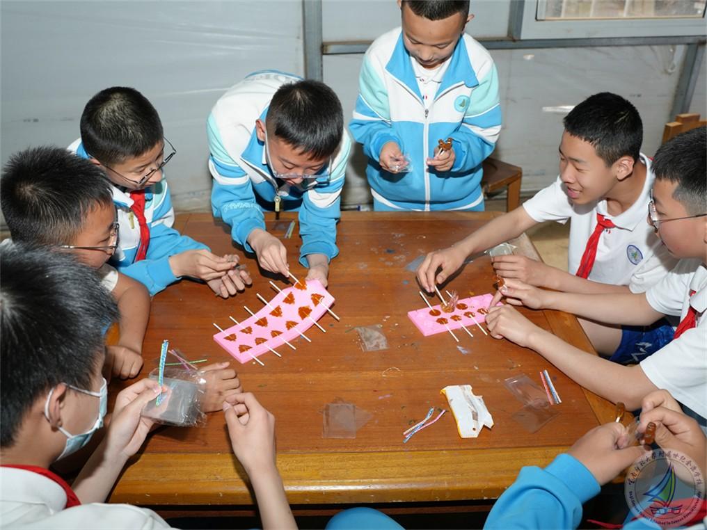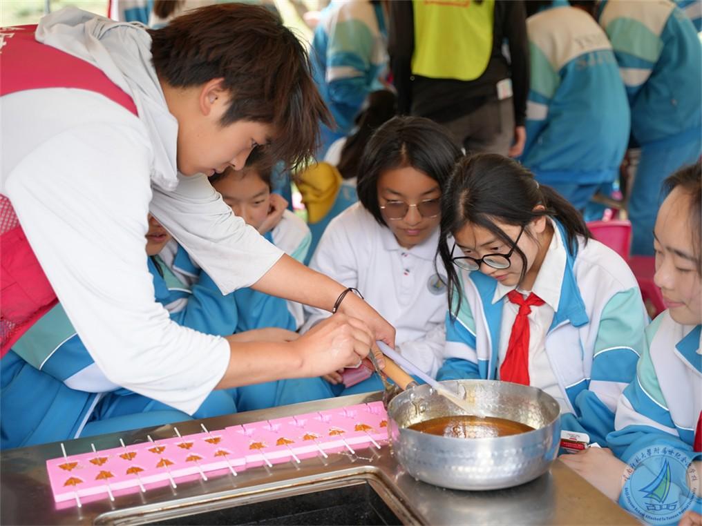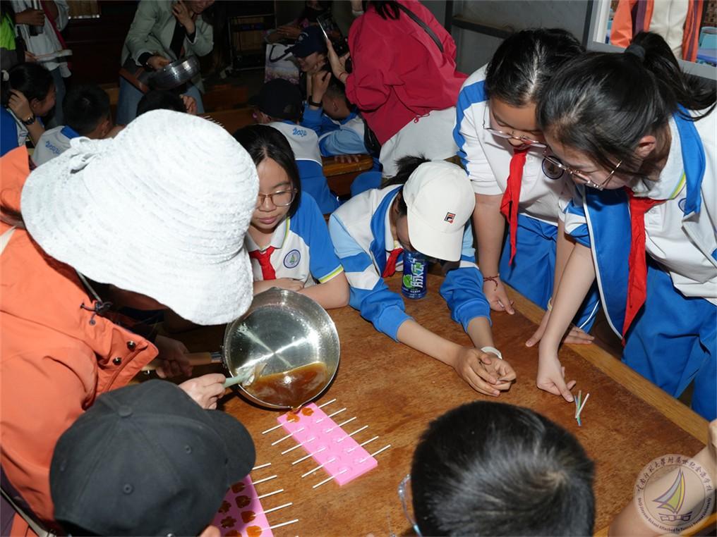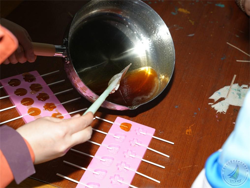 手工制作活动同样精彩纷呈、趣味十足。在制作棒棒糖时,同学们精心熬制梨膏,将甜蜜的味道与独特的创意巧妙融入其中。每一颗棒棒糖都凝聚着小组成员们的独特智慧与心血,让他们感受到传统美食制作的魅力。