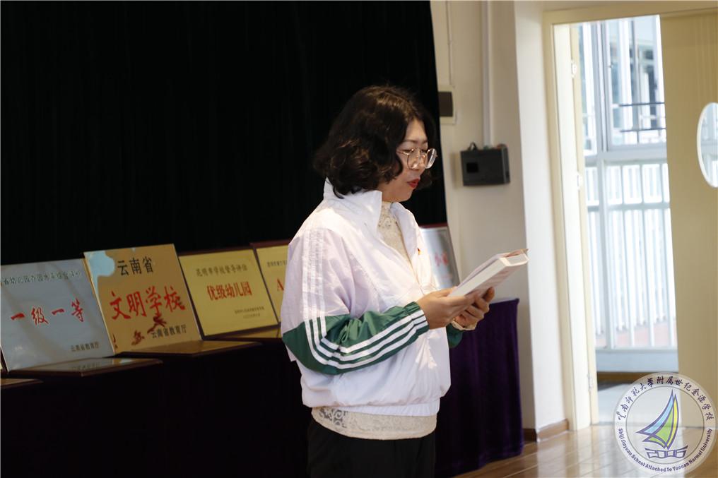 为认真学习贯彻党的十九届五中全会精神,根据《云南师范大学附属世纪金源学校关于举行2020年11月教职工政治理论学习的通知》要求,充分发挥党支部的政治核心作用,在学校党委的统一部署下,幼儿园党支部于2020年11月19日中午开展“铭记历史 奋勇前进”主题党日活动。渠志春副校长到会指导,宣传委员崔燕同志主持,全园教职工参与本次活动。