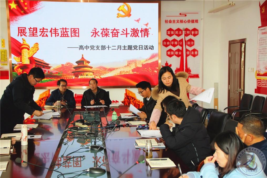 为深入学习贯彻落实党的十九届五中全会精神,进一步动员和激励广大党员同志思想和行动统一到党中央重大决策部署上,坚定理想信念,永葆青春激情,2020年12月24日,高中党支部开展了“展宏伟蓝图,永葆青春激情”的主题党日活动,全体党员参与了会议,支部书记肖勤同志主持了会议。