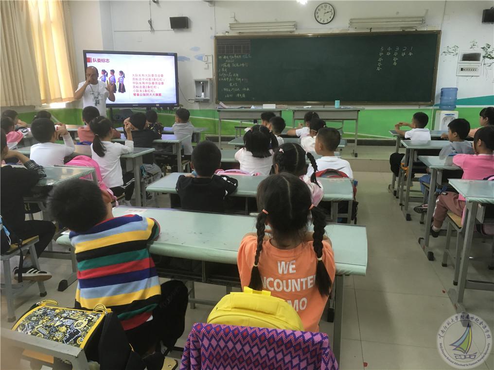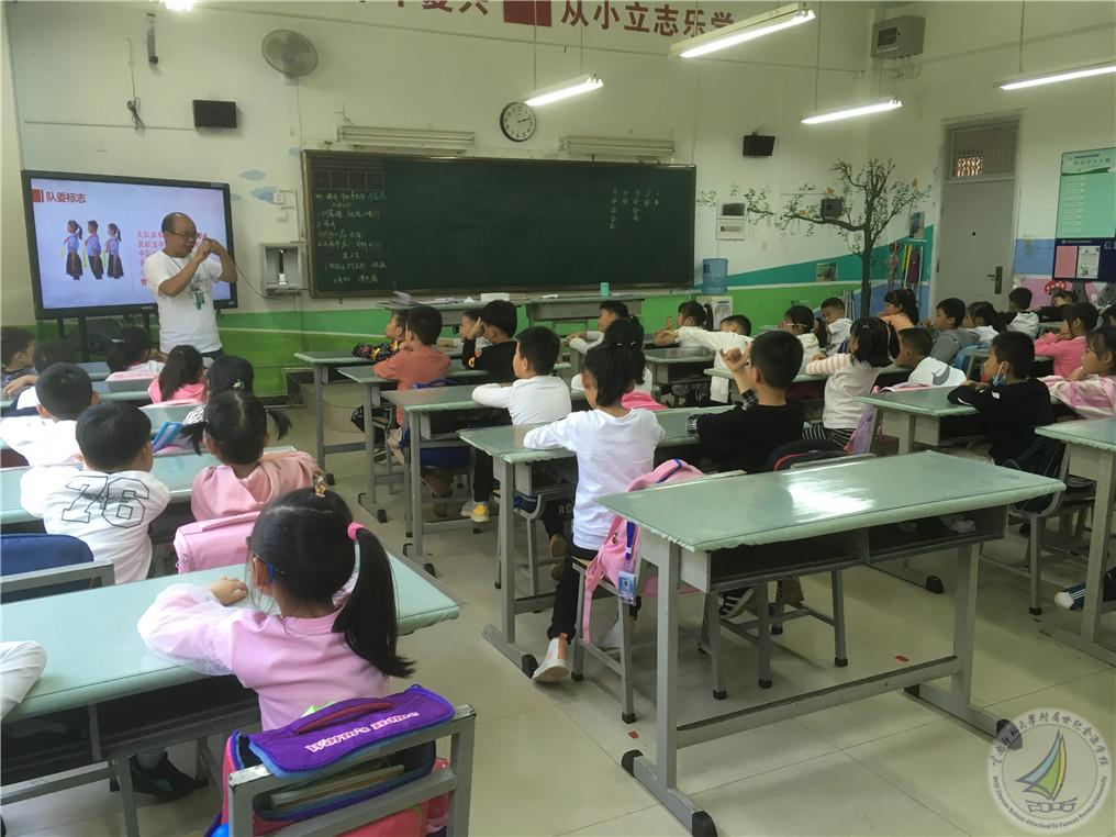 首先,李老师向大家介绍了少先队的前身,给大家讲了儿童团的故事。其次,李老师给大家介绍了队委标志以及队徽队旗。大家都明白了,只有优秀的一年级生才能加入少先队,并且要非常努力才能当上队委。