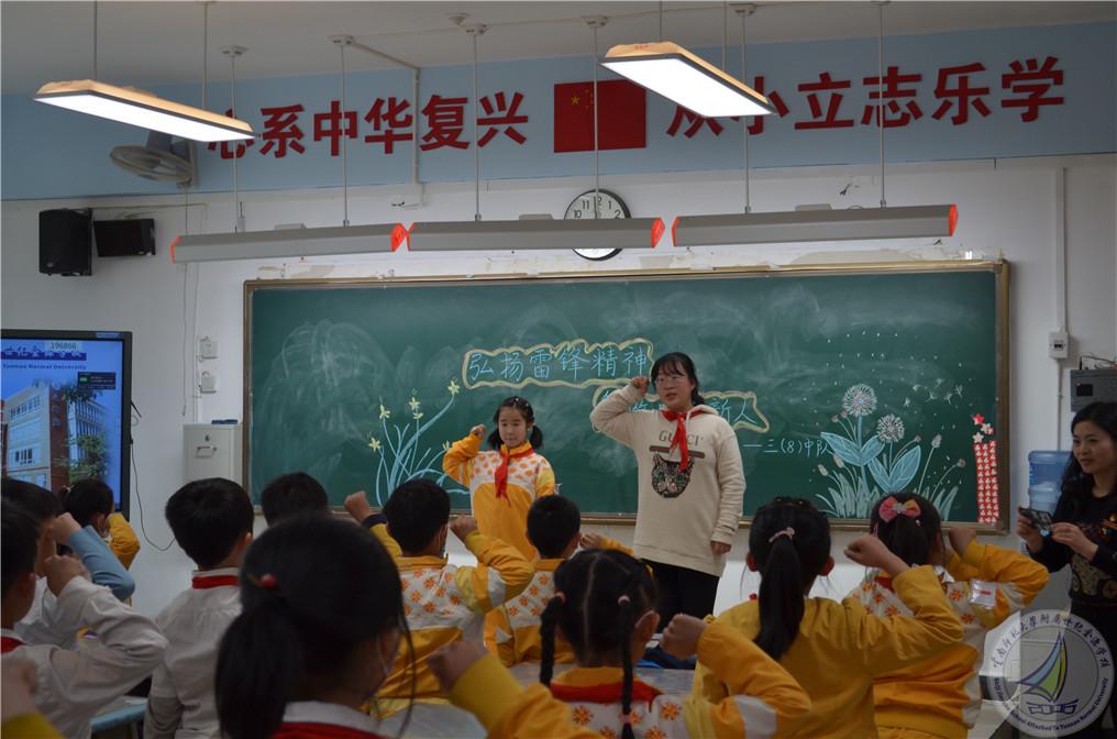 首先,少先队大队部向全体少先队员发起学雷锋活动的倡议。接着各班组织了丰富多彩、形式多样的主题班队会活动。有的观看雷锋同志的影片,有的讲述雷锋同志的优秀事迹,有的搜集雷锋同志的经典语录,有的开展丰富多彩的趣味活动,每个班级都在热火朝天的进行着学雷锋活动。