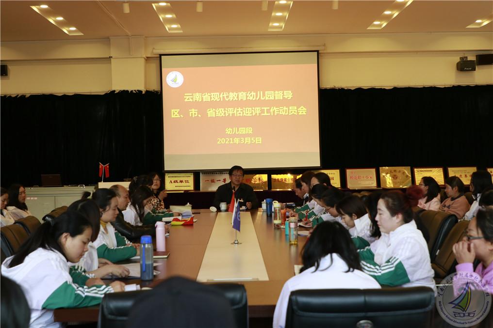 活动共分为四项议程。首先由学校马永文书记、校长就即将迎来的云南省现代教育幼儿园督导评估工作作动员讲话。马书记、校长提出了以评促建、以评促改、以评促优、以评促发展的目标,依托学校机构改革的优势,对幼儿园迎评工作提出具体工作要求,鼓励广大党员同志在关键时刻一定要讲政治,讲大局,讲党性,充分发挥党支部的战斗堡垒作用及每位党员的先锋模范带头作用。