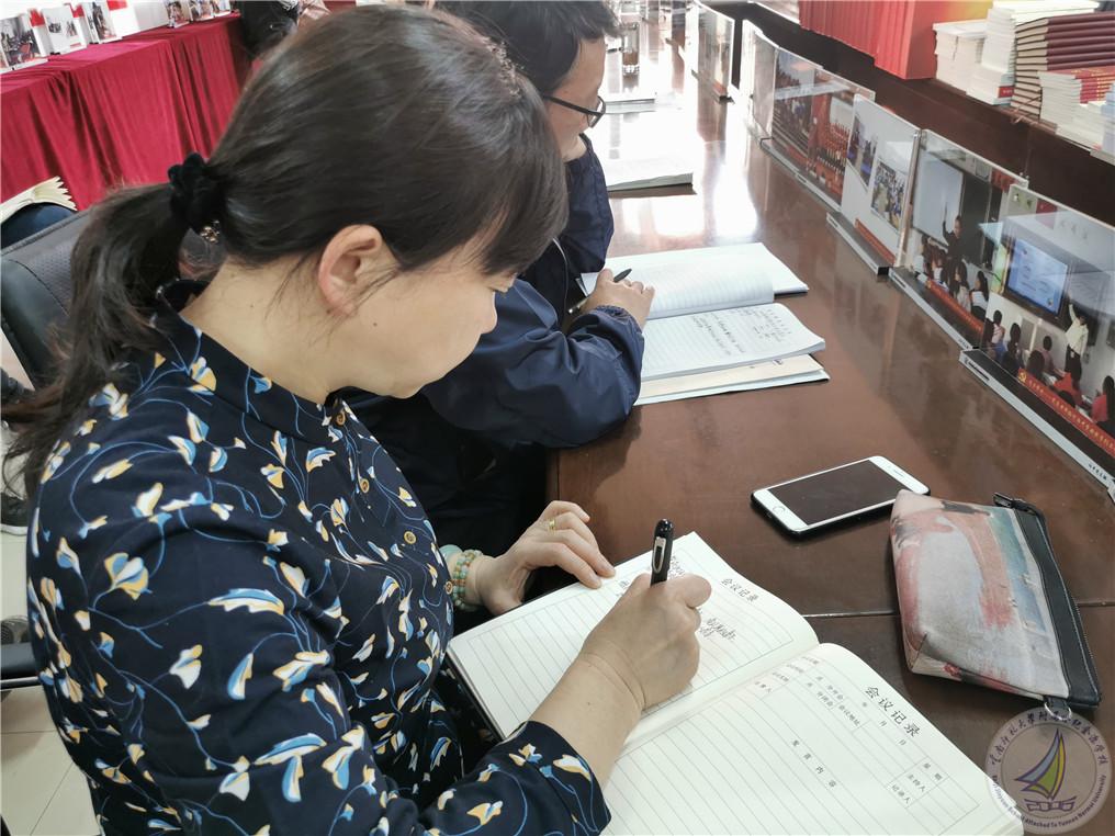 初中党支部全体党员同志认真聆听做好学习笔记,深刻领会在全党开展党史学习教育的重要性。