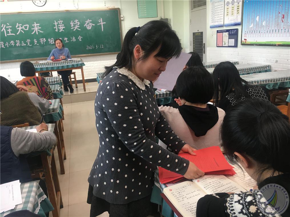2021年3月12日下午4时半,小学部第三党支部全体党员在四年级6班教室开展三月主题党日活动,活动主题是“鉴往知来 持续奋斗”。会议由支部书记梁珈同志主持,全体党员参与。