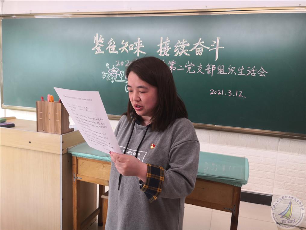 2021年3月12日下午4:30,小学部第二党支部全体党员在四(4)班教室开展了三月份主题党日活动,活动主题为“鉴往知来 持续奋斗”。会议由支部书记杨绘春同志主持,全体党员参与。