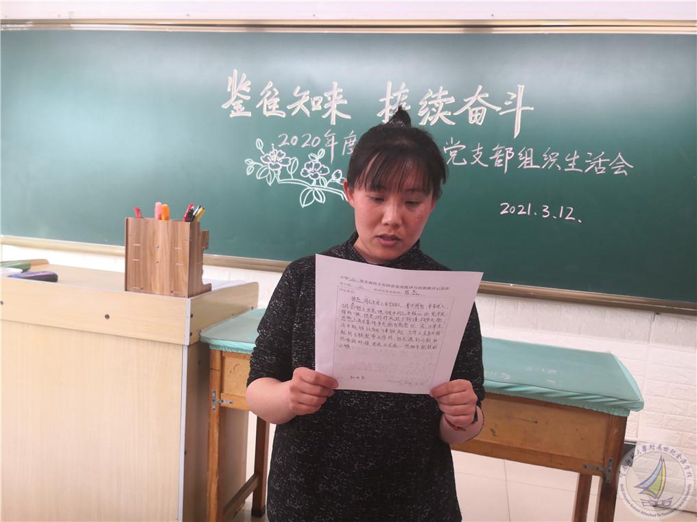 接下来,支部书记杨绘春同志传达了党委《关于2020年民主生活会和党支部民主评议工作的有关通知》。民主生活会三个党小组分别在四(4)班、四(5)班和四(6)班教室由党小组长胡蝉、高敏和李琳玲组织开展,三个党小组全体党员通过热烈又真诚的批评与自我批评,多角度地认识了自己问题,并下决心在今后的学习和工作中不断修正自己。