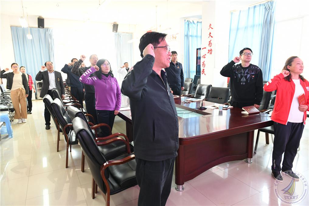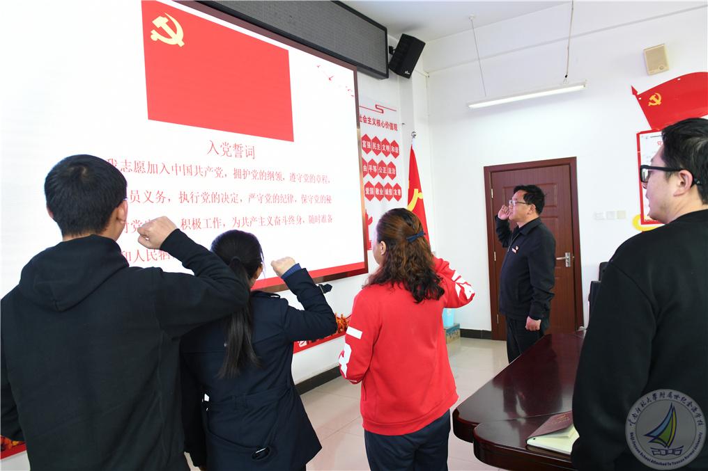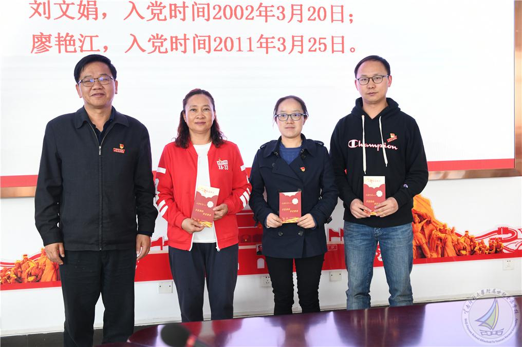 最后,马永文书记、校长为陈久毅、刘文娟、廖艳江三位党员颁发政治生日贺卡,并带领全体党员重温入党誓词。