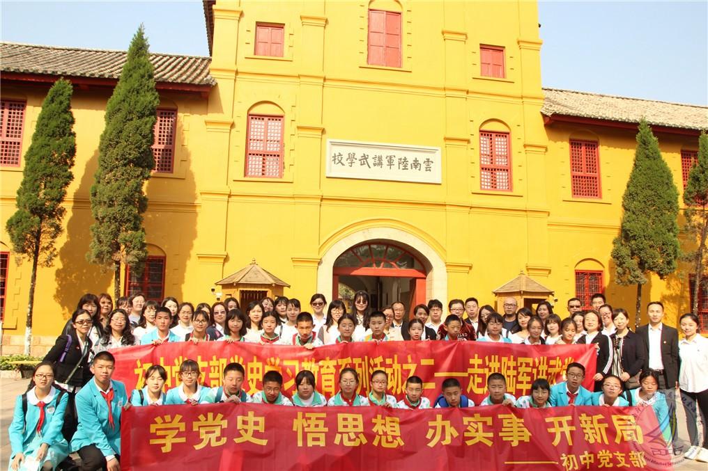 为认真贯彻落实我校党委关于党史学习教育实施方案,深入推进“两学一做”学习教育制度化、常态化,初中党支部全体党员教师和初一、初二年级的部分学生代表于2021年4月11日上午来到云南陆军讲武堂参观学习,重温党的历史,接受党性教育和爱国主义教育。