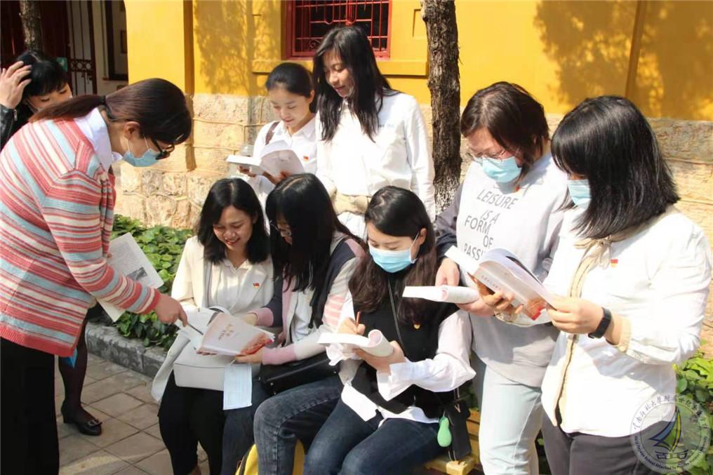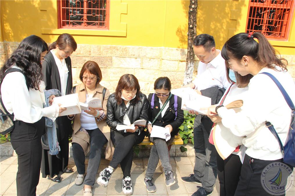 进入陆军讲武堂后,支部全体党员聚集在一起,在党支部书记蔡国平同志的带领下开始认真学习《中国共产党简史》。党员老师们以党小组为单位聚在一起边阅读边进行探讨,在学习的同时老师们也不忘对随行的学生进行党史教育。