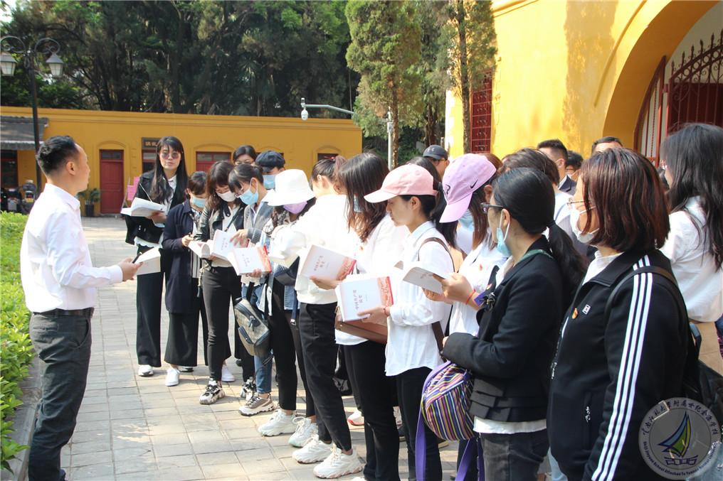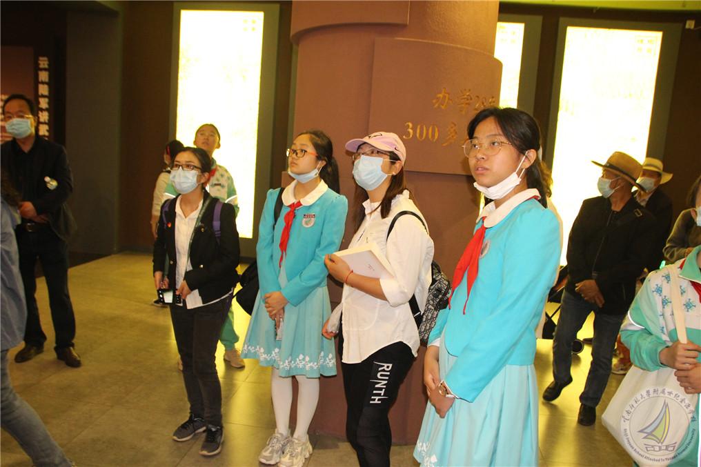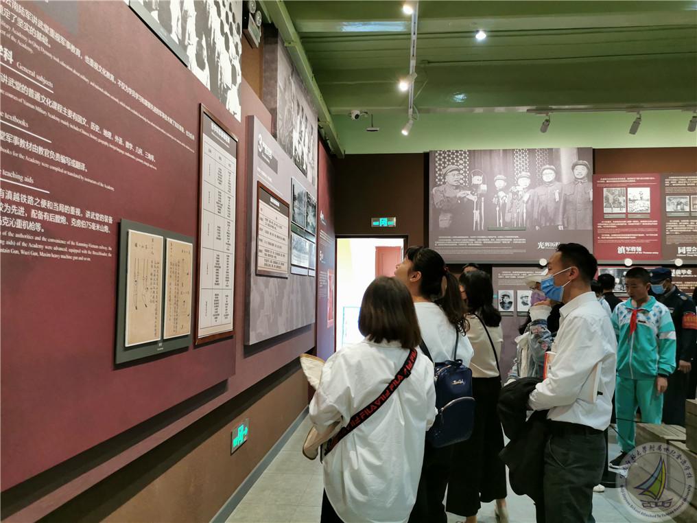 在集中学习党史后,支部党员老师带领着学生开始参观陆军讲武堂。大家首先参观了“百年军校·将帅摇篮”主题展览馆,学习了云南陆军讲武堂成立之初的历史背景及蔡锷、朱德、叶剑英等杰出军事将领的英勇事迹。