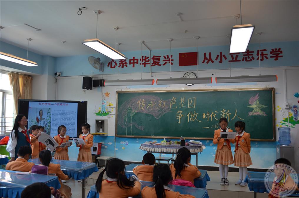 4月9日下午,小学段各班开展了主题为“传承红色基因 争做时代新人”的主题班队会活动。各班精心准备,活动精彩纷呈:有的组织少先队员们聆听红军感人的故事,有的学习共产党的发展历史,有的观看爱国主义题材影片,有的进行了缅怀英雄的诗歌朗诵……