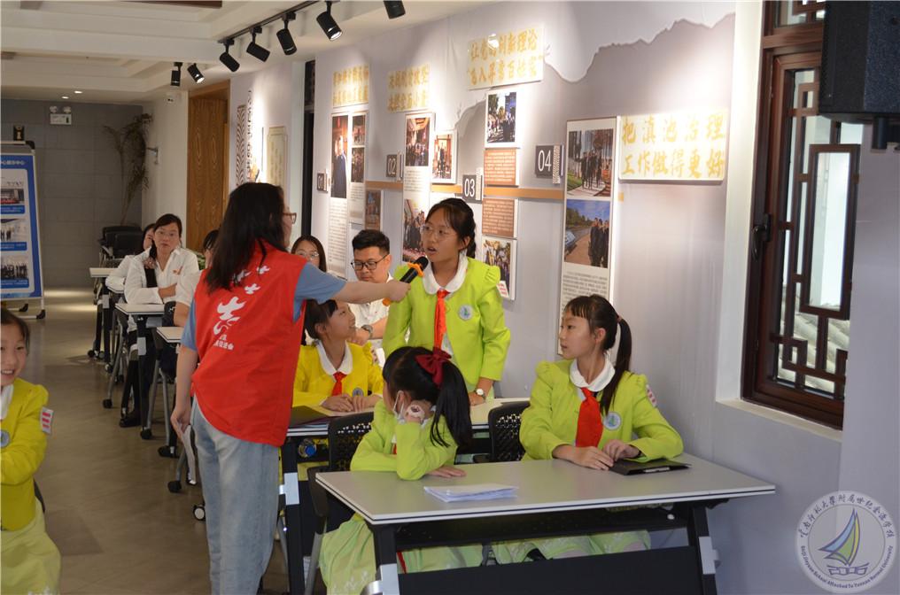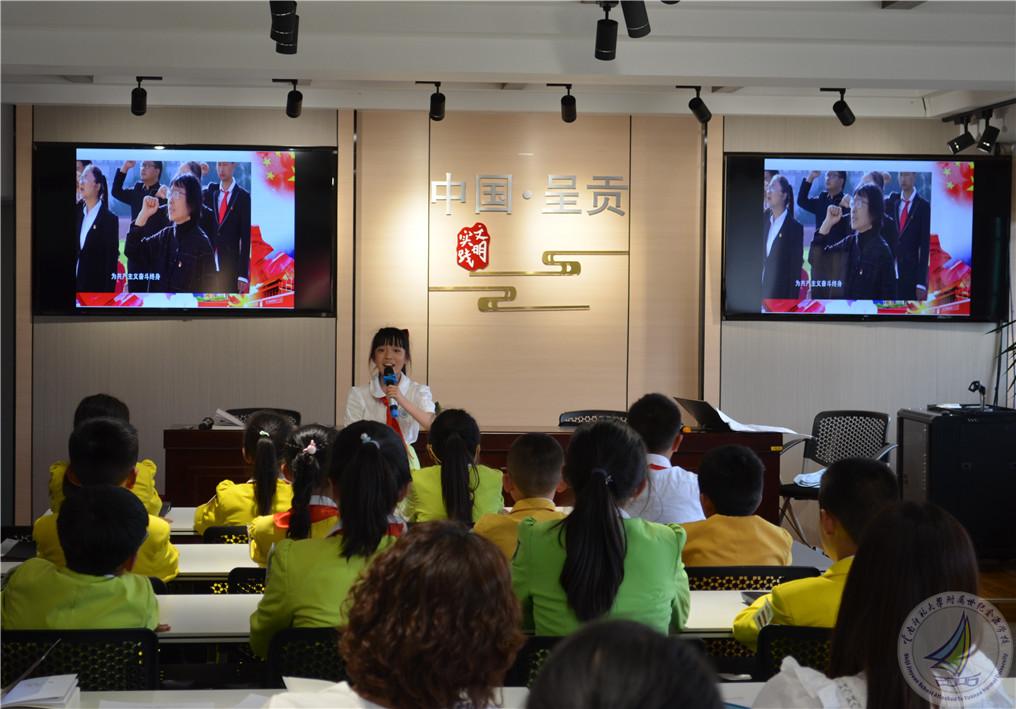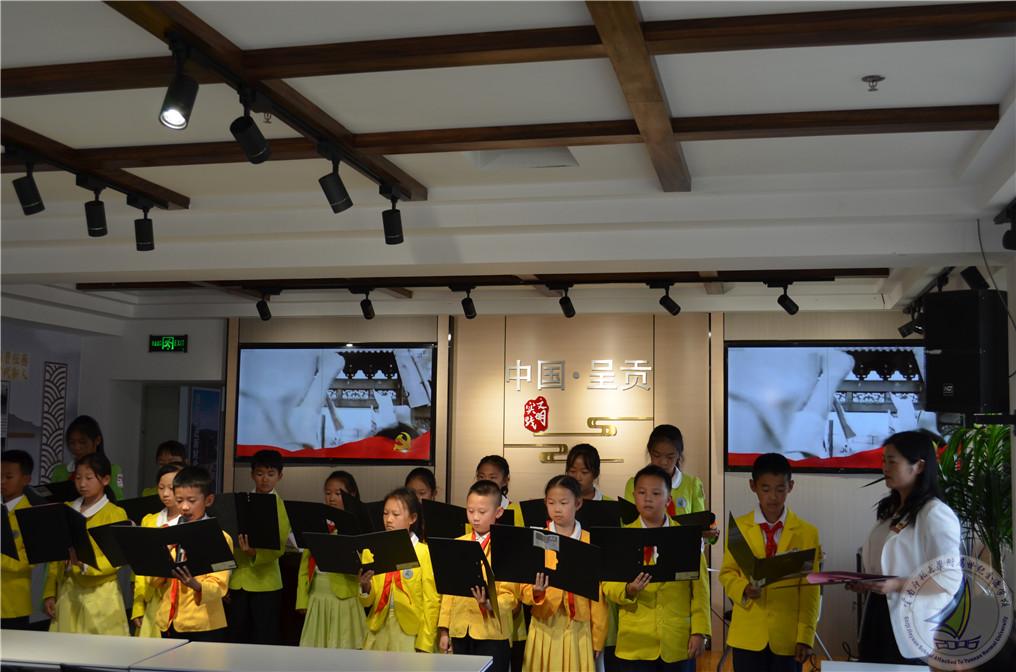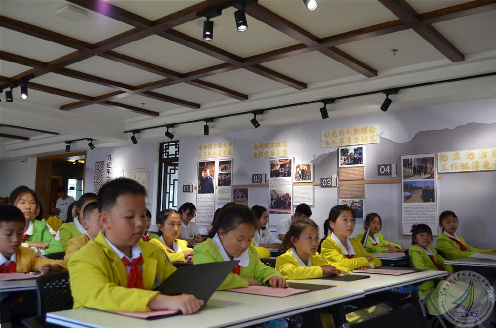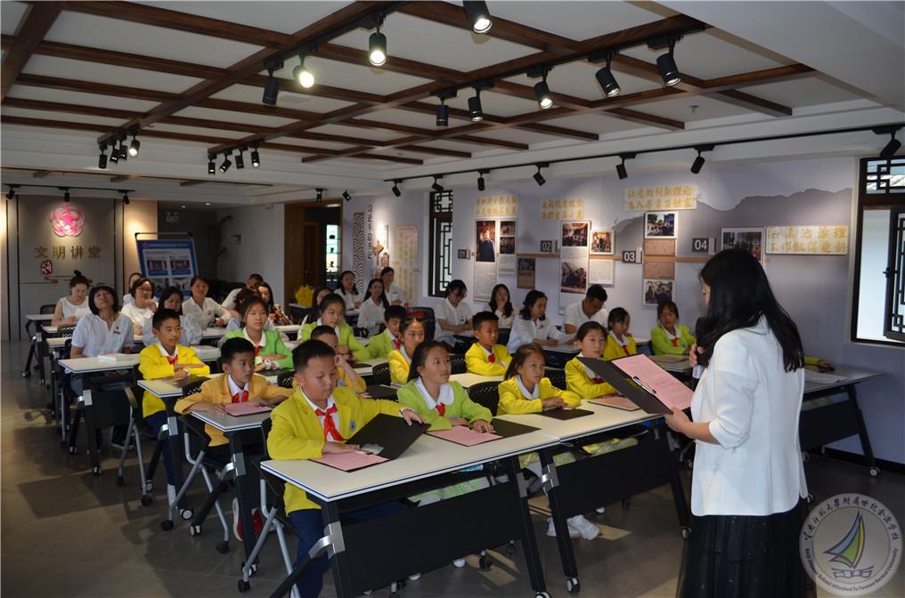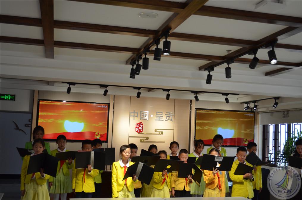 活动分为两个部分:第一部分是室内学习活动;第二部分是室内外参观学习活动。活动首先来到了新时代文明实践中心报告厅,活动第一项由少先队员带来诗歌朗诵《红船,在南湖起航》,孩子们的朗诵激情昂扬,无不让在场的老师和同学热烈鼓掌。