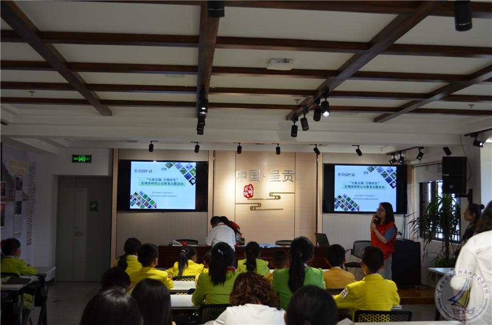 活动第三项由呈贡区新时代文明实践中心的志愿者为少先队大队干部们进行主题为“七彩云南 万物共生”的生物多样性公众教育活动。尤其在知识抢答环节,同学们个个积极参与,踊跃挑战,彰显了优秀少先队员的综合能力和素质。这一活动环节,让同学们更加认识到生物多样性对我们国家、我们人类的重要性。