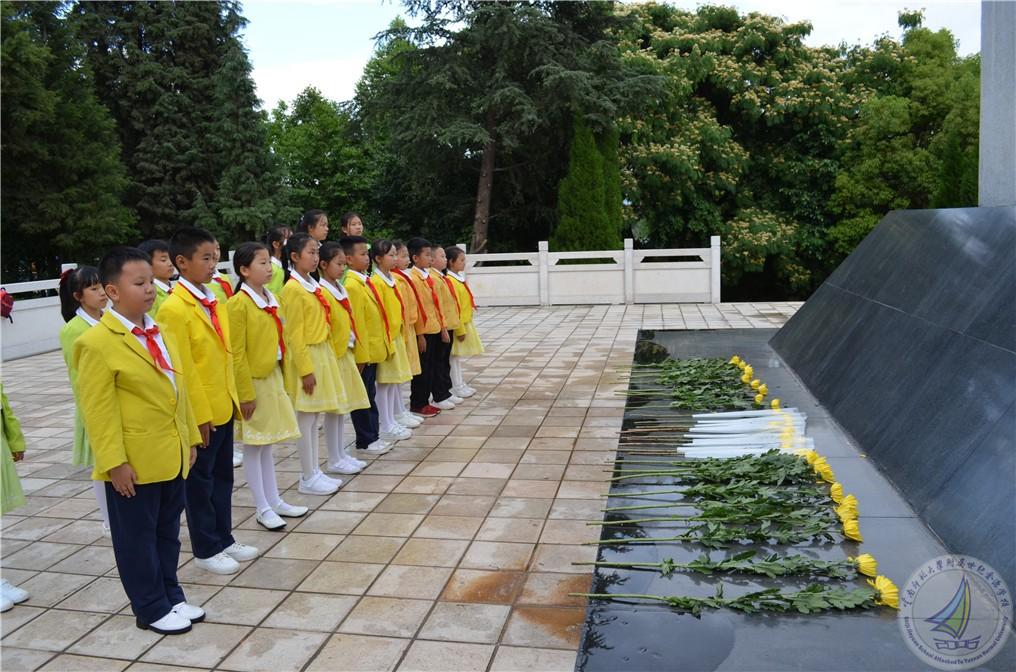 室内参观学习结束后,同学们来到烈士陵园追思革命先烈的英雄事迹,向烈士表达崇高的敬意,全体少先队员向烈士敬献鲜花,全体少先队员默哀,把最崇高的敬意献给长眠的烈士,告慰英雄的忠魂,也表明了向先烈学习革命精神的决心。