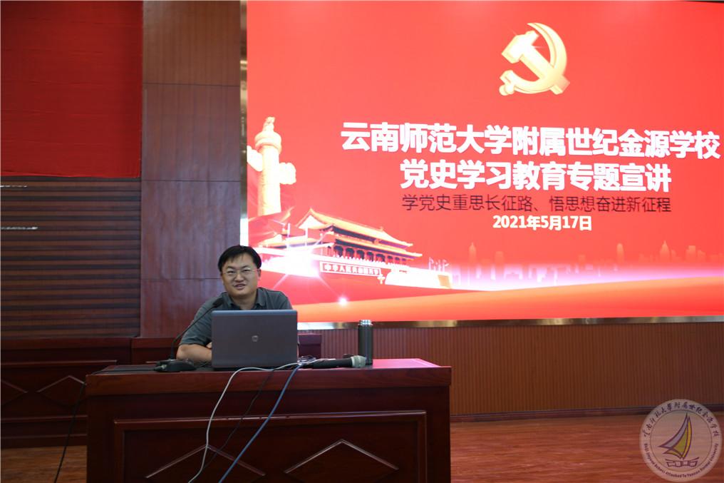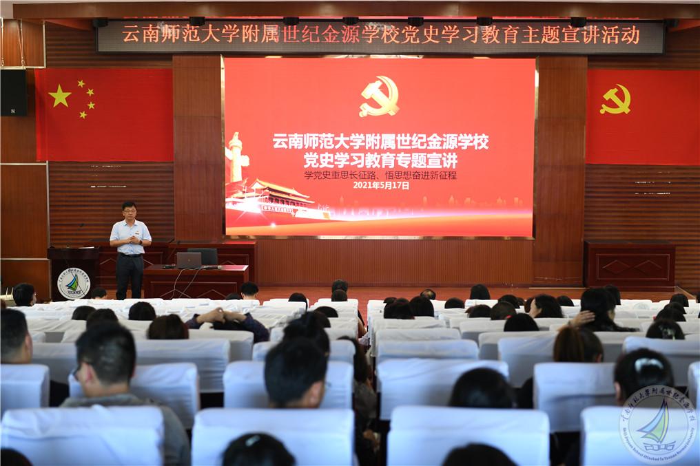 5月17日下午,在学校报告厅举行了由全校教职工参加的党史学习教育主题宣讲活动。会议由学校党委书记马永文主持,由云南师范大学历史与行政学院讲师云师大党史学习教育教师讲师团成员普瑞敏博士主讲,普瑞敏博士的宣讲主题为“学党史重思长征路,悟思想奋进新征程”。