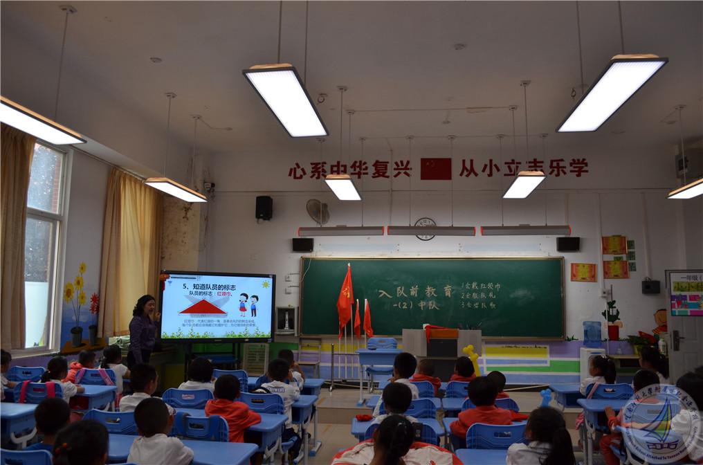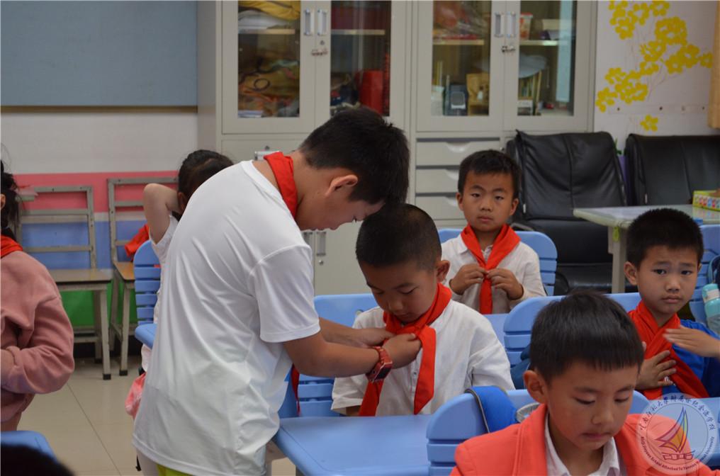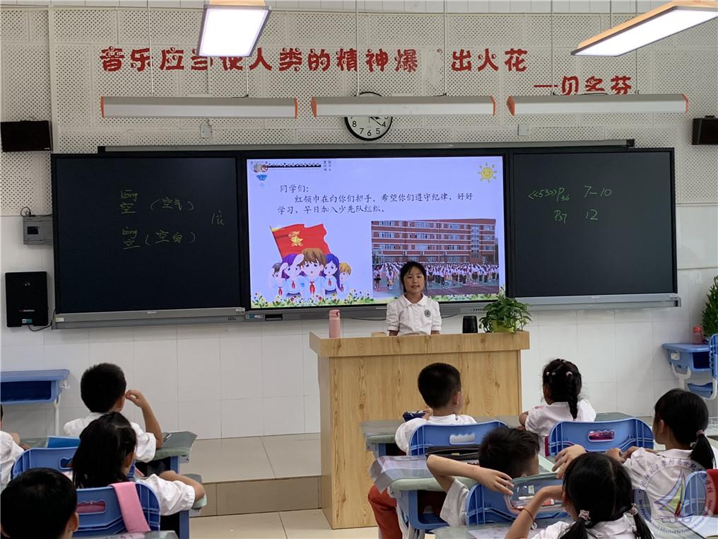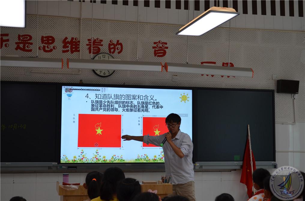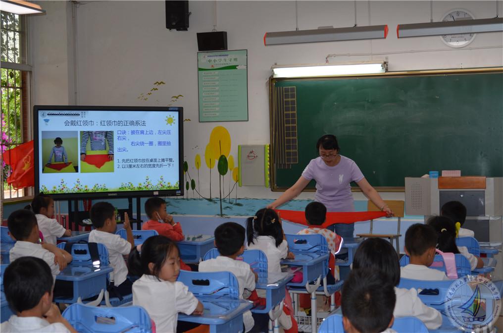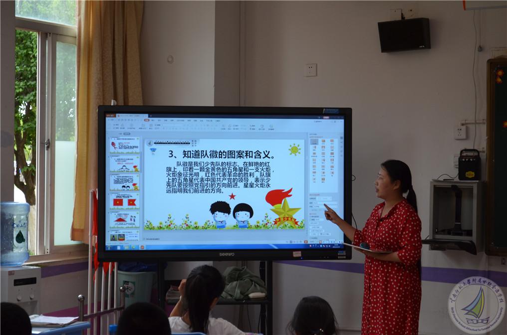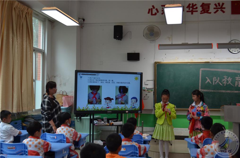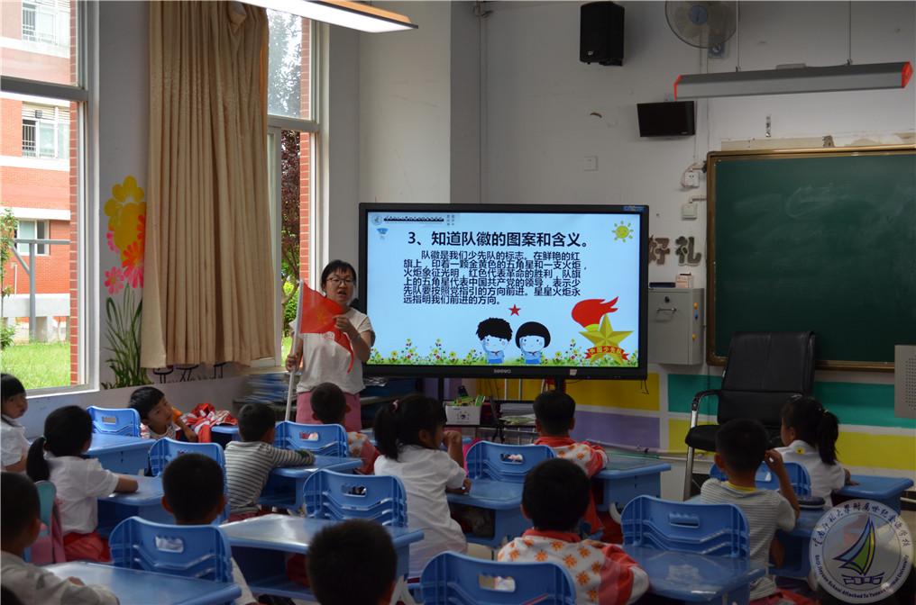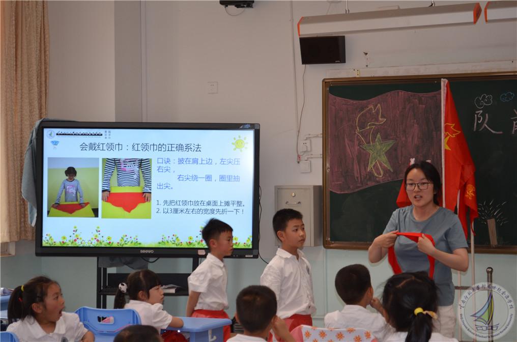 5月14日和21日两天在学校大队部的统一组织下一年级各班召开了少先队入队前教育活动。活动中一年级的同学认识了国旗、党旗、团旗和少先队队旗,一起学习了少先队的历史,了解了少先队在战争年代成长的艰难历程;学习了队旗的寓意,认识了大队旗、中队旗和小队旗;同学们在老师和各位大队委的带领下学习了红领巾的佩戴方法,学习如何敬队礼,学唱队歌。在各位班主任的启发下,一年级的同学知道了红领巾是国旗的一角,是革命先烈用鲜血染红的。所有同学经过队前教育后都有强烈的愿望申请加入少先队组织,想成为一名少先队员,想为红领巾增光,为少先队添彩。