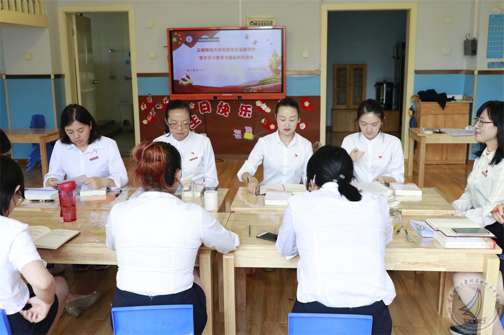 为充分运用党史学习教育成果,聚焦“学党史、悟思想、办实事、开新局”这一主题,围绕“学史明理、学史增信、学史崇德、学史力行”这一目标,云南师范大学附属世纪金源学校幼儿园党支部于2021年7月7日上午开展了党史学习教育专题组织生活会。支部全体党员、预备党员共28人参会。