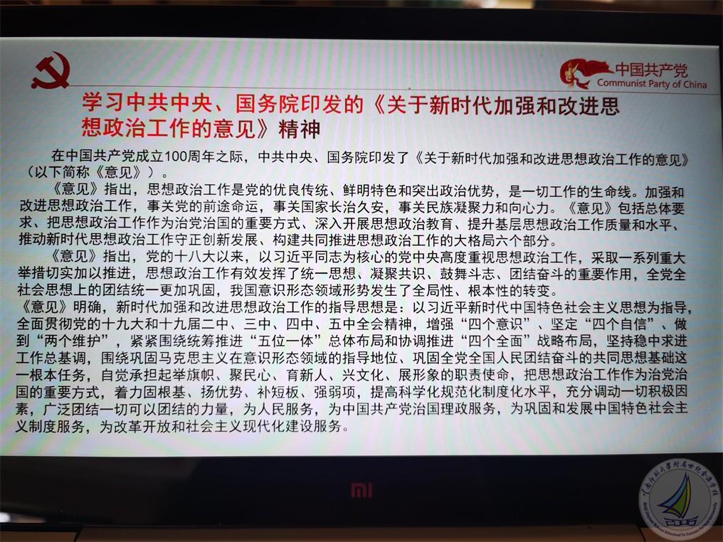 根据学校安排,以“响应伟大号召,铸就强国之梦”为主题,全校各基层党支部通过多种形式,认真组织学习习近平总书记在庆祝中国共产党成立100周年大会上的重要讲话精神,教育引导广大师生党员立足岗位,积极响应党中央号召,牢记初心使命,坚定理想信念,践行党的宗旨,永远保持同人民群众的血肉联系,始终同人民想在一起、干在一起,风雨同舟、同甘共苦,继续为实现人民对美好生活的向往不懈努力,努力为党和人民争取更大光荣!