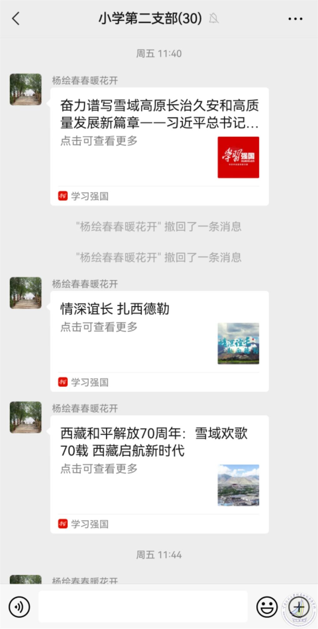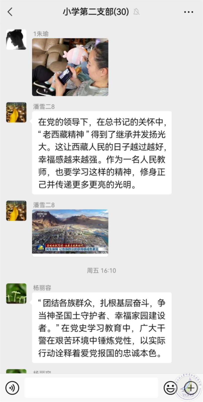支部书记杨绘春要求,在认真学习“习近平总书记在西藏考察期间重要讲话精神”之后,结合自己的学习体会,将心得分享在支部群里,大家共同学习。之后,大家都各抒己见。