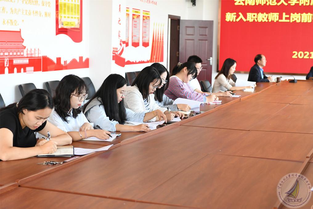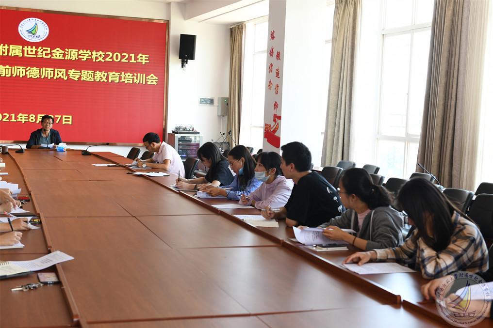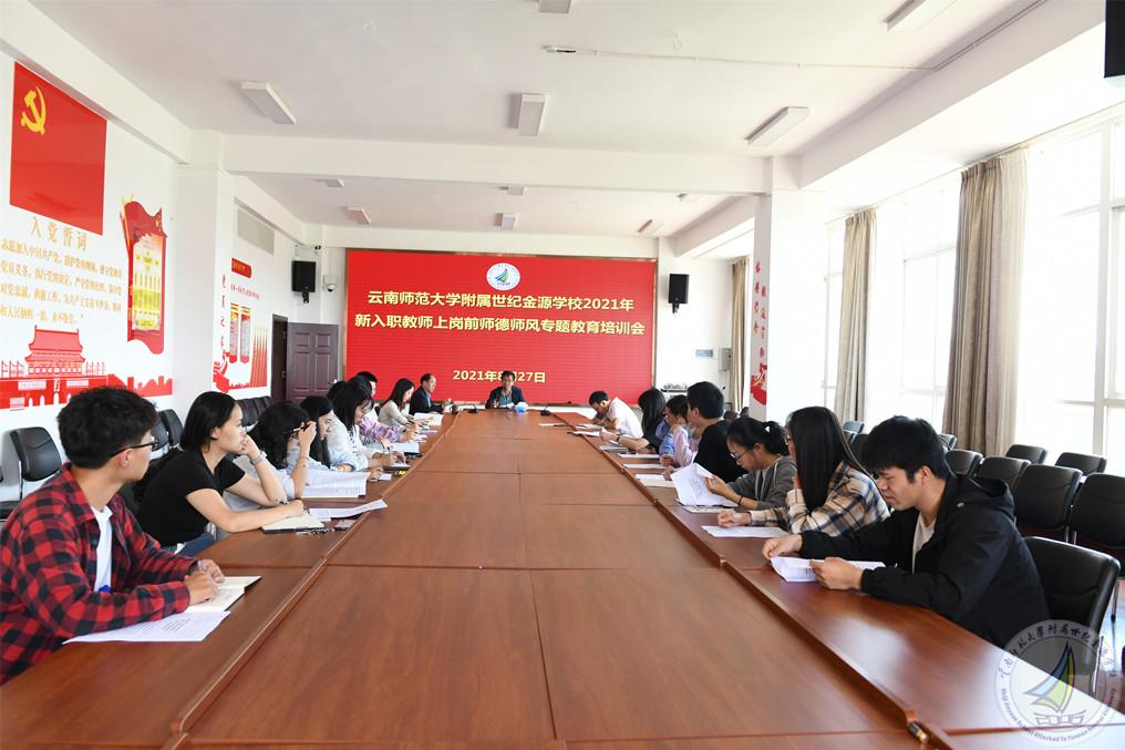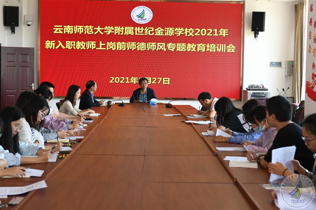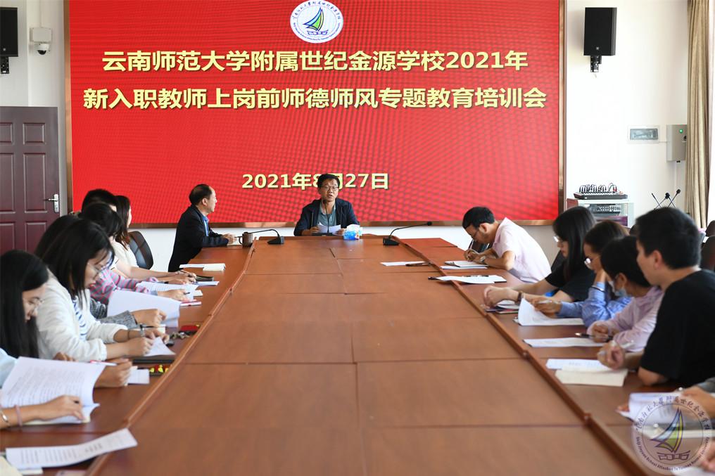 2021年8月27日中午,学校在四楼会议室举行了对2021年新入职教师的上岗前师德师风专题教育培训会。会议由党委书记、校长马永文主持,党委副书记许全友、党办主任陈宝宏参与了培训。